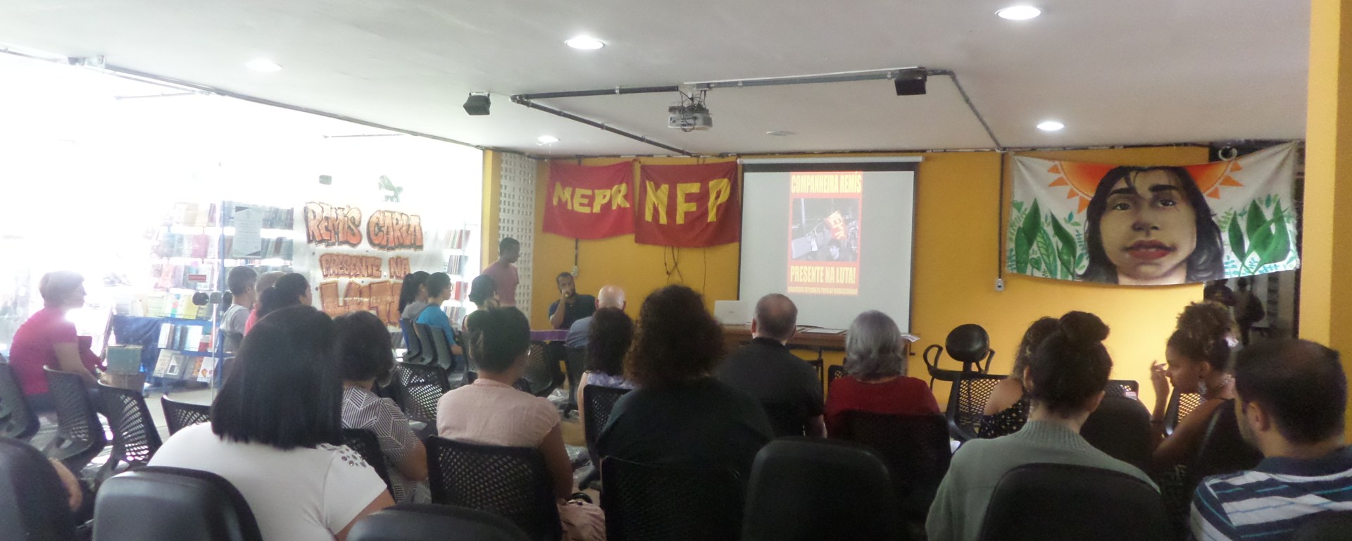 Outra importantíssima atividade ocorrida durante a Semana Pedagógica do CE foi a homenagem à nossa queria e revolucionária companheira Remís Carla. A Executiva Pernambucana, à convite do MEPR e do MFP, participou da homenagem onde a memória de nossa companheira foi mais uma vez honrada ao levantarmos as bandeiras vermelhas pelas quais lutou. O caráter combativo de Remís foi muito bem lembrado, bem como sua decisão e convicção na luta pela transformação violenta desta sociedade apodrecida indissociável da luta contra toda forma de oportunismo. Contando com a presença aguerrida de familiares de nossa companheira, a homenagem contou com intervenções, um vídeo sobre sua trajetória de vida e de militante, além da apresentação de uma bela canção em sua homenagem feita por um companheiro da banda Palafita e de uma poesia escrita pelos companheiros do Coletivo Bagaço. Ainda como parte da homenagem, foi feito o batismo do laboratório de informática da biblioteca e do Diretório Acadêmico do CE com o nome de nossa pedagoga revolucionária: Remis Carla.