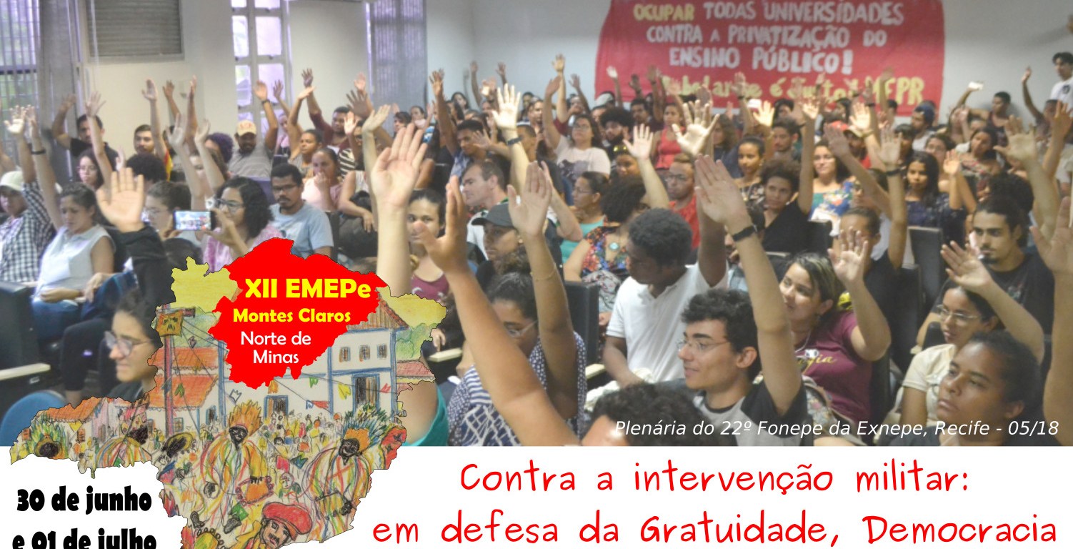 O EMEPe é um encontro estadual de caráter político, científico e cultural organizado pela ExMEPe com o objetivo de reunir os estudantes de pedagogia e demais interessados, para debater sobre a luta em defesa do ensino público e gratuito. Neste ano, o XII EMEPe terá como tema: “Contra a intervenção militar: em defesa da gratuidade, democracia e autonomia universitárias!”