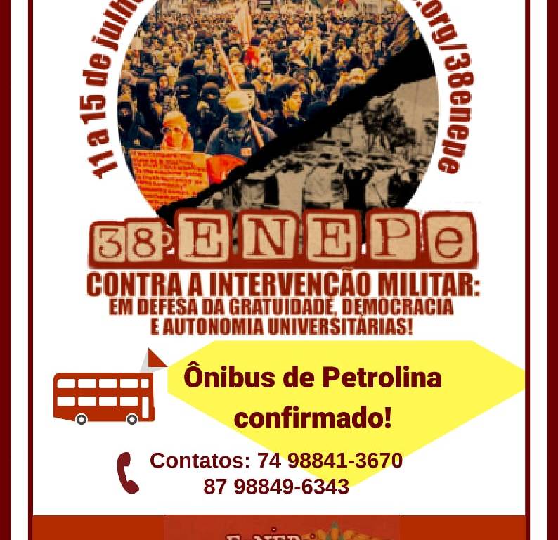 O 38° Encontro Nacional dos Estudantes de Pedagogia, acontecerá nos dias 11 a 15 de Julho em Maceió, e tem como tema: Contra a intervenção militar! Em defesa da gratuidade, democracia e autonomia das universidades!