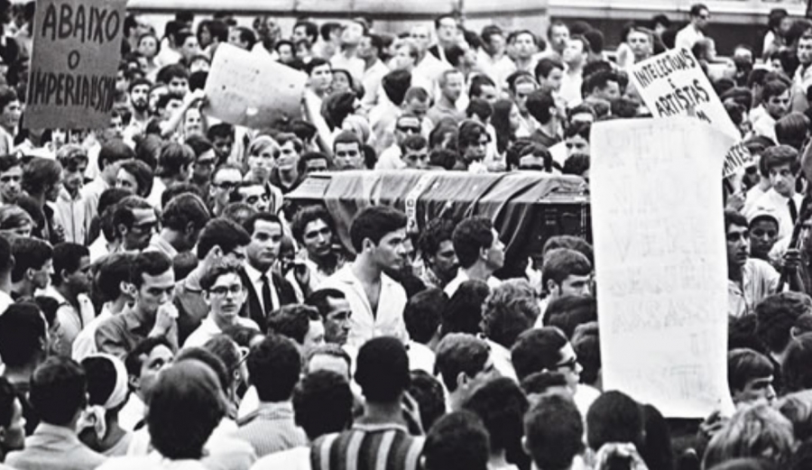 São emocionantes as imagens do enterro de Edson Luís, quando o Rio de Janeiro praticamente parou para homenagear o jovem combatente. Na missa de sétimo dia, em 4 de abril, as pessoas presentes foram atacadas pela cavalaria da PM com golpes de sabre na Igreja da Candelária. Quase três meses depois, em 26 de junho de 1968, os cariocas iam em peso para as ruas na famosa Passeata dos Cem Mil.