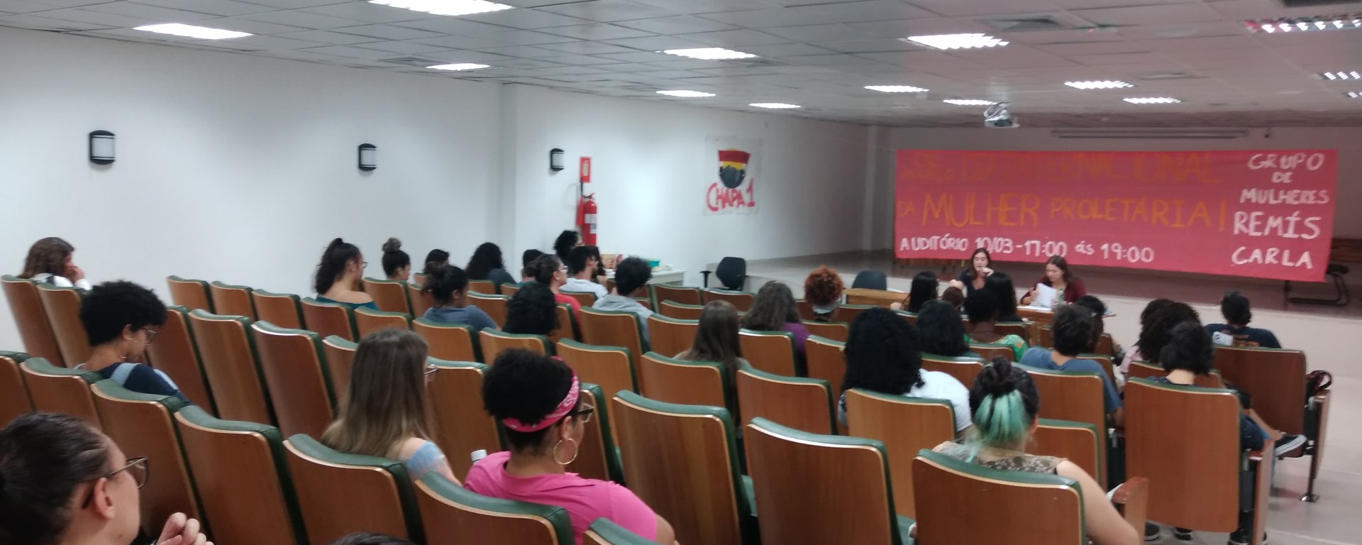 O Grupo de Mulheres Remís Carla (GMRC/Unifesp), em conjunto com o CAPeD, realizou no dia 10 de março de 2020 às 18h, no Auditório da Unifesp, em Guarulhos, região metropolitana de São Paulo, a celebração centenária e histórica do 8 de março, Dia Internacional da Mulher Proletária!