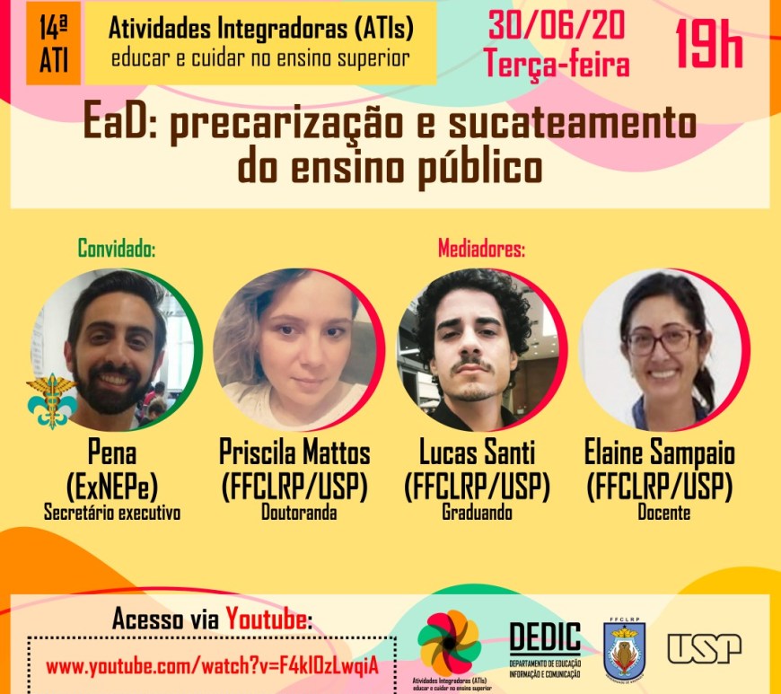 Reproduzido do ufscaesquerda.com Frente a iminente implementação do ensino remoto na Universidade Federal de Santa Catarina (UFSC), como forma de “recuperar” o semestre de 2020.1 e de realizar o semestre 2020.2 durante a pandemia da Covid-19, o movimento docente da UFSC chamado “Docentes em Movimento” lançou um manifesto no qual se declara contra o “ensino” remoto. O manifesto é autoconvocado pelos professores que o assinam … Continuar lendo Movimento Docente da UFSC publica manifesto contra o “ensino” remoto