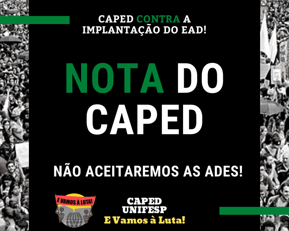 A nota foi lida em reunião virtual aberta dos estudantes de Pedagogia com o Departamento de Educação, realizada quarta feira, 10/06. Os professores demonstraram concordância com a nota e declaram seu apoio aos estudantes na luta contra a aprovação do Ead na Unifesp.