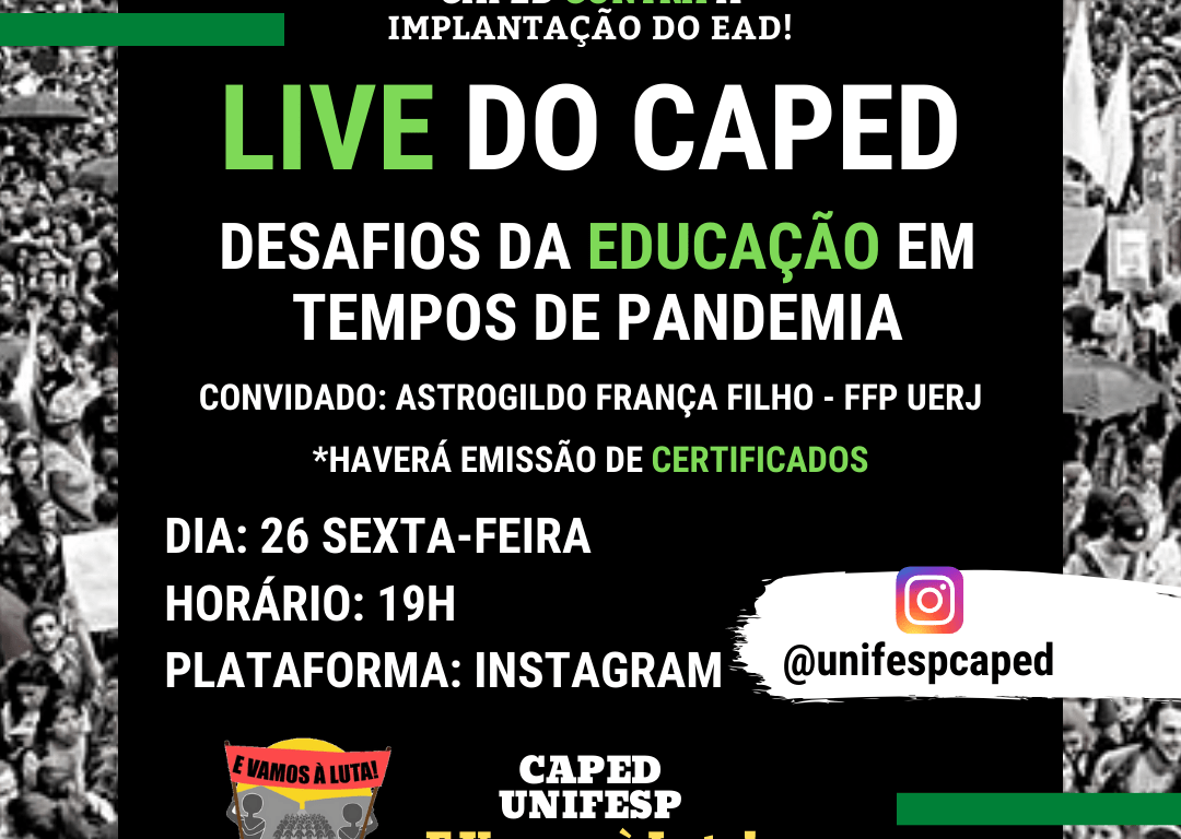 A Live será organizada pelo Centro Acadêmico de Pedagogia Cecília Meireles – Gestão E Vamos à Luta! da Universidade Federal de São Paulo. E contará com a presença do prof. Astrogildo França Filho, da FFP – UERJ.