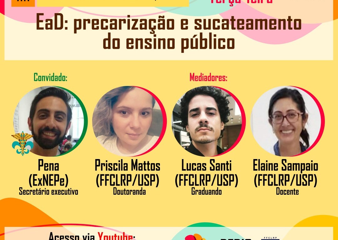 Estudantes e professores do curso de graduação em pedagogia e pós-graduação em educação, do Departamento de Educação, Informação e Comunicação, da Faculdade de Filosofia, Ciências e Letras, da Usp – Ribeirão Preto, convidaram a ExNEPe para participar debate online, que terá como tema ” Ead: precarização e sucateamento do ensino público”.