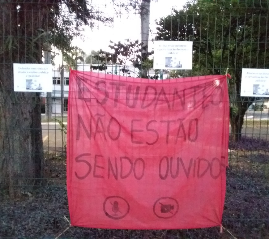 Com o intuito de ampliar a discussão e impulsionar a luta contra o ensino remoto/EaD, estudantes se mobilizaram para colar lambes pela cidade. Colados ao longo da principal via da cidade, em postes e pontos de ônibus, os lambes com as frases: “pelo adiamento do ENEM!”, “Pelo direito de ensinar, estudar e aprender!”, “Contra o sucateamento e privatização do ensino público!”, “Por universidades e escolas … Continuar lendo [MS] Colagem de lambes contra o ensino remoto/EaD em Dourados