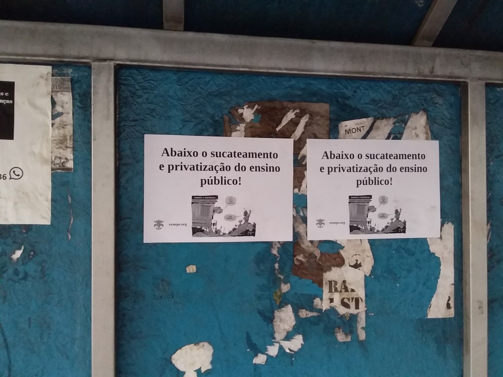 Cabe ressaltar que os estudantes da UEM, em combativa demonstração de que não aceitarão a imposição do EaD, realizaram no último dia 12/08 uma colagem de cartazes por todo o campus de sua universidade.