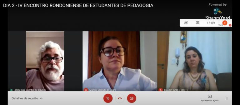 No sábado, dia 15, entre 14h e 17h, reuniram-se o Pró-reitor de Graduação, Prof. Dr. Jorge Luiz Coimbra, a Prof.ª Dr.ª Marilsa Miranda de Souza – UNIR/Campus Porto Velho e a Prof.ª Dr.ª Isaura Isabel Conte – UNIR/Ji-Paraná na mesa EaD e ensino remoto: precarização e privatização da educação. As falas dos palestrantes foram intensas e bem fundamentadas, colocando problema do desmonte da educação, o desejo do Velho Estado brasileiro e do imperialismo com o ensino remoto e denunciando: O ensino remoto na UNIR é o caminho da precarização e privatização da Universidade.