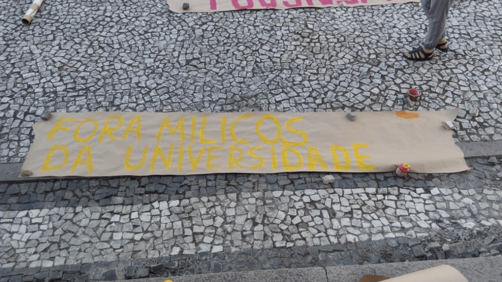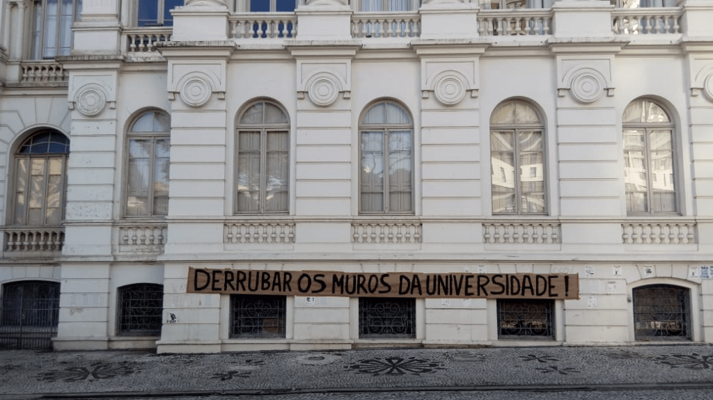 Sua primeira ação foi uma atividade presencial realizada na Praça Santos Andrade onde os estudantes e algumas pessoas que passavam ao redor, fizeram faixas, cartazes e colagem de lambes com consignas como: “Em Defesa da Autonomia Universitária”, “Não Aceitaremos Intervenção!”, “Derrubar os Muros da Universidade!”, “Fora Milicos da Universidade!”, “Pelo Co-governo Estudantil!” e “Abaixo o EaD!”. Essa foi a primeira de muitas atividades vitoriosas e os estudantes continuarão elevando sua luta em defesa da autonomia universitária e não aceitarão nenhum tipo de intervenção!