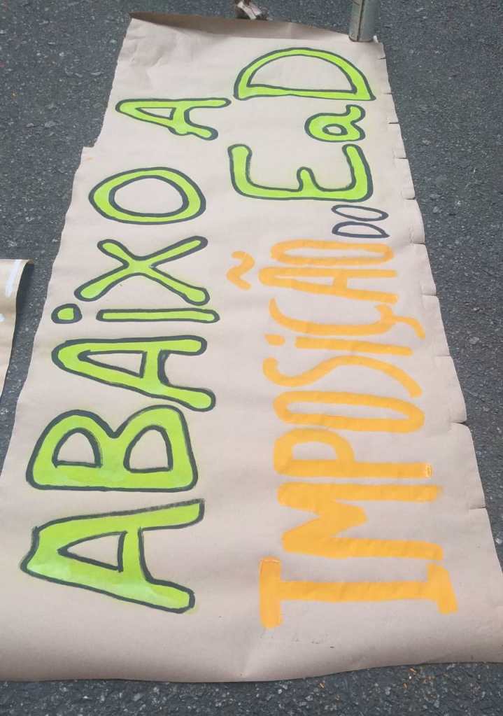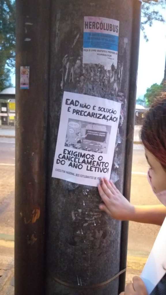No dia 19/09 em Curitiba após reunião conjunta do Centro Acadêmico Anísio Teixeira (CAAT) com a Executiva Paranaense de Estudantes de Pedagogia (ExPEPe) que deliberou pela realização do Encontro Estadual de Estudantes de Pedagogia e discutiu os problemas relacionados à EaD foi realizada uma nova atividade de propaganda nos campi do centro da capital. Em seus cartazes e lambes os estudantes expressaram a necessidade de impulsionar o boicote ao ensino remoto, entendendo que este representa um processo acelerado de privatização da universidade pública e do ensino básico, acarretando em precarização da docência e perda inestimável de direitos para o povo.