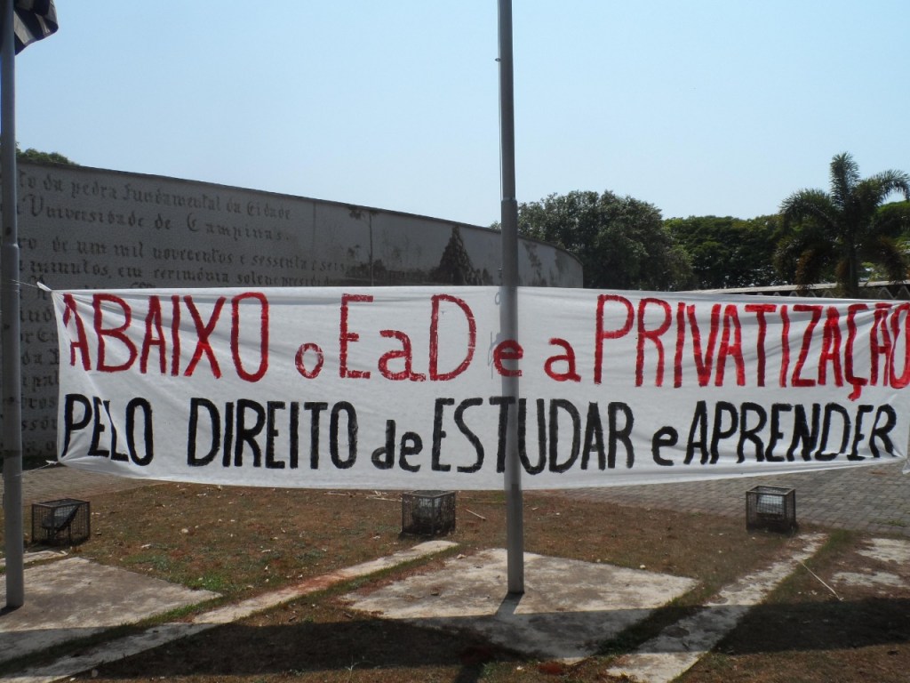 A EaD na Unicamp, implementado como ensino remoto emergencial (ERE) de forma totalmente vertical e antidemocrática, sem consulta aos estudantes e trabalhadores, tem sido utilizado como exemplo para as universidades federais. Na realidade, a EaD nada mais é do que o fim do caráter científico das universidades, com a total separação do caráter teórico e prático do ensino, da discussão, dos debates e da produção científica. Além disso, representa um ataque a gratuidade, visto que muitos estudantes não possuem computadores, internet ou até mesmo um espaço apropriado de estudos.