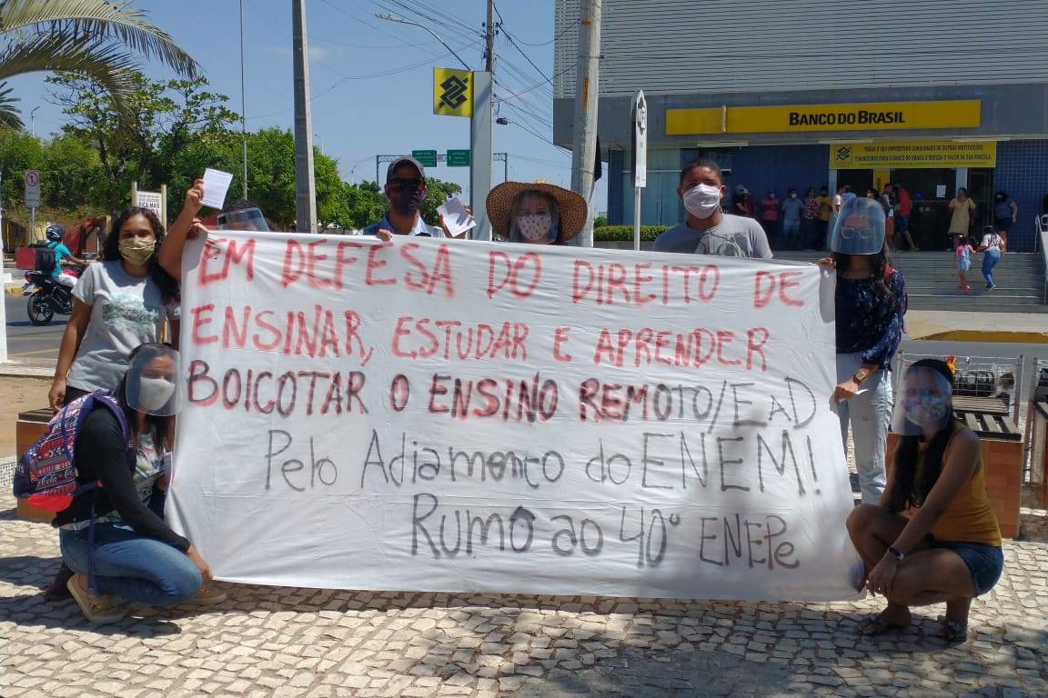 Agitando a bandeira do adiamento do ENEM e o boicote à EaD como forma de barrar a privatização do ensino público, os(as) estudantes distribuíram centenas de panfletos, ao mesmo que realizaram uma campanha de finanças para o envio de delegados da região ao 40º ENEPe.