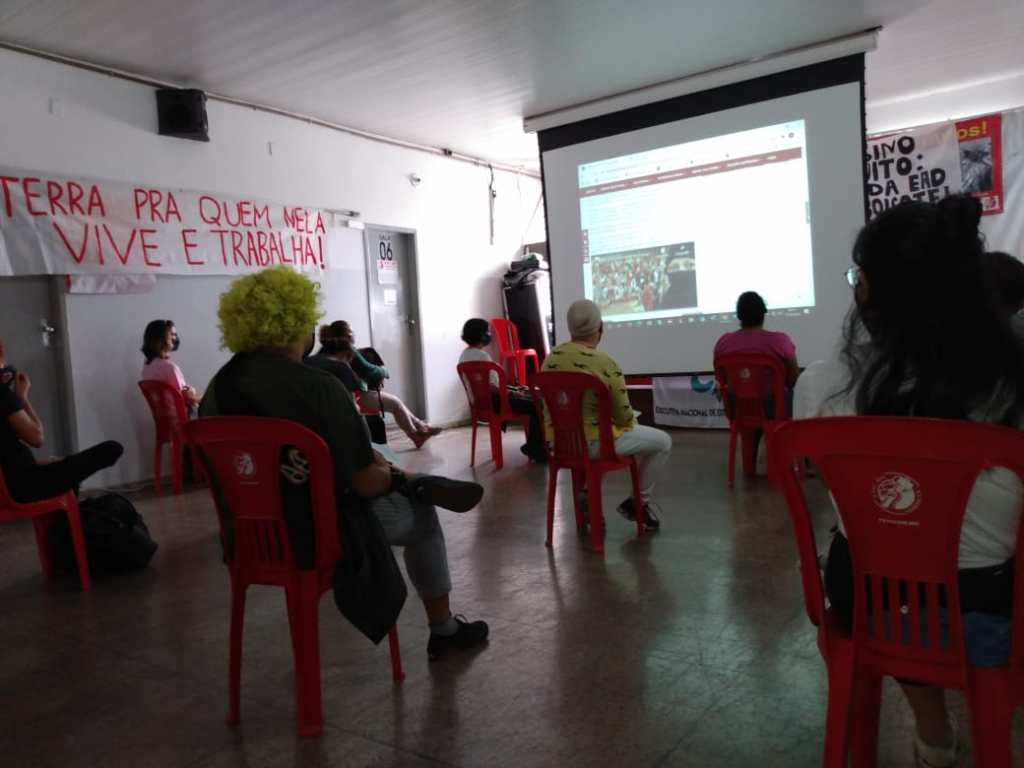 Expressando esse ânimo de luta, os estudantes não deixaram de repudiar os covardes ataques ao povo; dessa vez, o acampamento Tiago dos Santos, foi o alvo da arbitrariedade, desprezo e violência relegados históricamente às massas de nosso país. Foi reproduzido o vídeo em que as mulheres e crianças denunciam a grave situação de montagem de cerco contra o acampamento, e, na mesa de situação política, o palestrante expôs o abismo que separa as classes dominantes das massas em luta: “temos duas imagens emblemáticas contrapostas: por um lado o senador flagrado com dinheiro na cueca, que representa toda a sujeira, canalhice e podridão do Estado; por outro, o vídeo de denúncia das camponesas, que representa todo o espírito de luta e a moral saudável do que está por vir”.