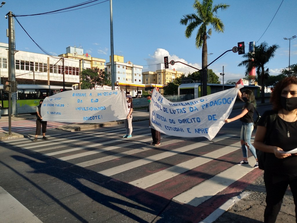 Puxando palavras de ordem e levantando faixas, os estudantes colocaram para a população as consignas que temos defendido de impulsionar a luta em defesa do ensino público e gratuito, barrando a EaD e pelo adiamento do ENEM. Além de defender que os espaços da universidade devem ser utilizados para servir ao povo na sua luta pela sobrevivência em meio a crise econômica e sanitária que já causou o falecimento de mais de 175 mil pessoas, segundo dados oficiais subnotificados.