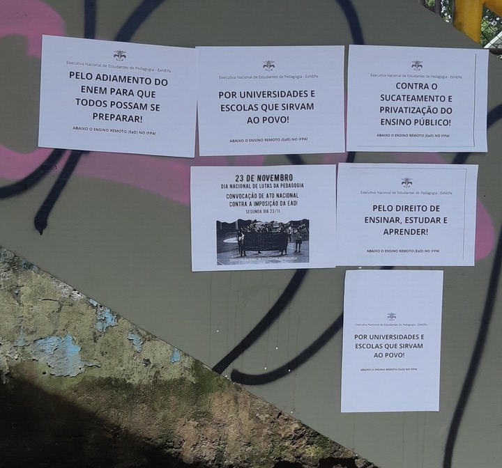 Estudantes de Pedagogia e Licenciaturas se organizaram para realizar manifestações entorno da defesa da educação pública e contra a EaD, seguindo o Plano de Lutas da ExNEPe. Os estudantes fizeram colagens em frente ao IFPa campus Belém. A atividade chamou bastante atenção dos transeuntes que paravam para ler as consignas.