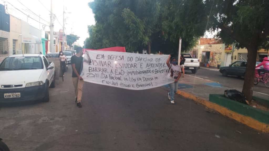 Em Laranjeiras do Sul, em frente à Universidade Federal da Fronteira Sul (UFF) estudantes e professores organizaram uma oficina de cartazes, estenderam faixas e puxaram palavras de ordem contra a imposição da educação à distância. A UFFS, importante universidade do Sul do país, é uma das 14 IFES atualmente sob intervenção federal, a luta estudantil mais uma vez marca presença no interior do Paraná e demonstra que o estudantado não aceitará calado esta situação.