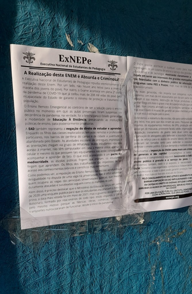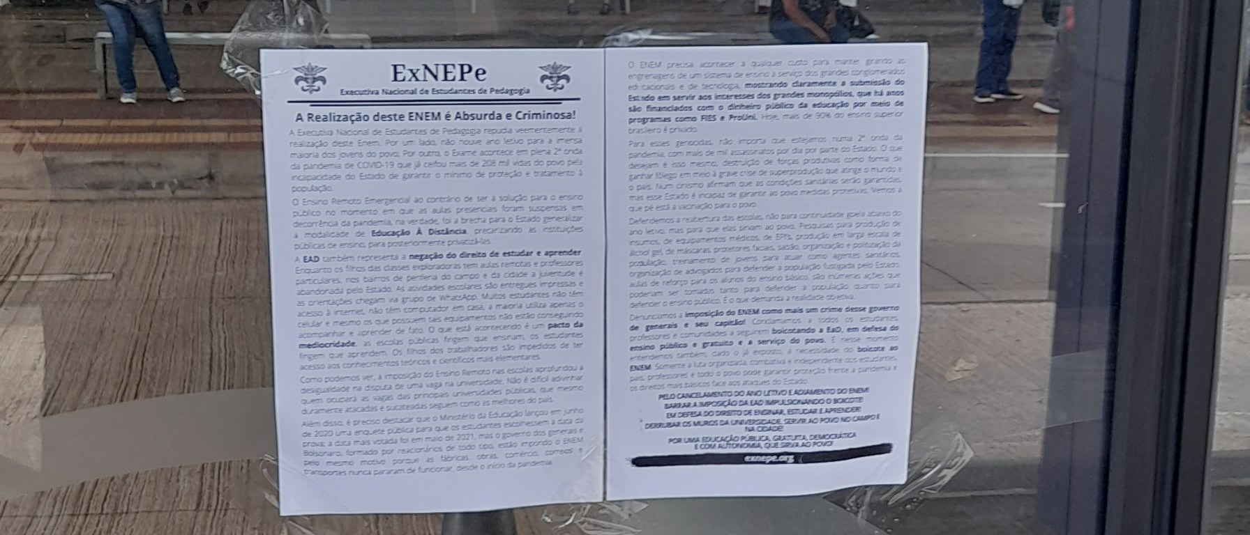 Estudantes de Maringá atendem a convocatória da ExNEPe e realizam colagem de panfletos contra a absurda e criminosa realização do ENEM.