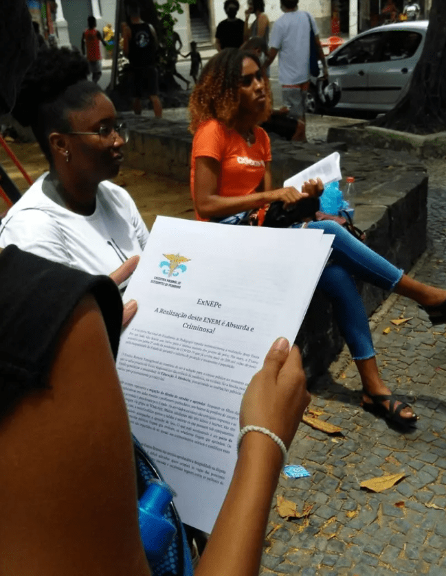 No dia 25/01, estudantes independentes realizaram uma panfletagem contra a aplicação da prova do Exame Nacional do Ensino Médio (Enem), na porta da Universidade Federal Fluminense (UFF), campus do Gragoatá, em Niterói. A panfletagem começou por volta de 12h, com os estudantes distribuindo um material feito pela Executiva Nacional dos Estudantes de Pedagogia que fundamenta a posição de repudiar a realização da prova na atual situação de crise sanitária.