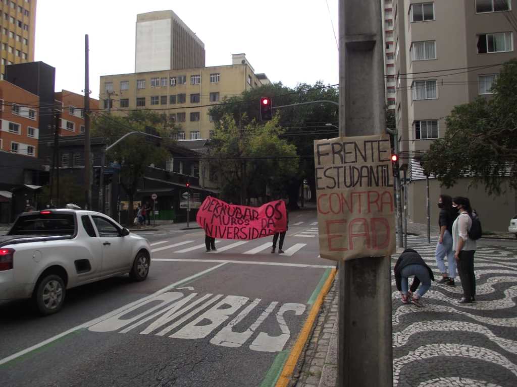 Os manifestantes afirmaram que é essencial manter atividades de mobilização presencial como essa como forma de combater os ataques à educação. O DCE da UFPR tem tomado atitudes absolutamente conciliatórias com a reitoria, tentando deixar a EaD “mais suportável” aos estudantes, e se recusando a organizar a luta combativa e presencial. Mas a Frente afirmou contundentemente que a EaD não é emergencial nem passageira, ela faz parte de um projeto privatista da educação brasileira a mando do Banco Mundial. A Educação a Distância precariza o ensino público, extermina qualquer relação entre a teoria e a prática, e abre brecha para a entrada de empresas privadas que tem o objetivo de vender todo o aparato para a realização de aulas online. Não podemos ter nenhum tipo de ilusão quanto ao caráter dessa medida!