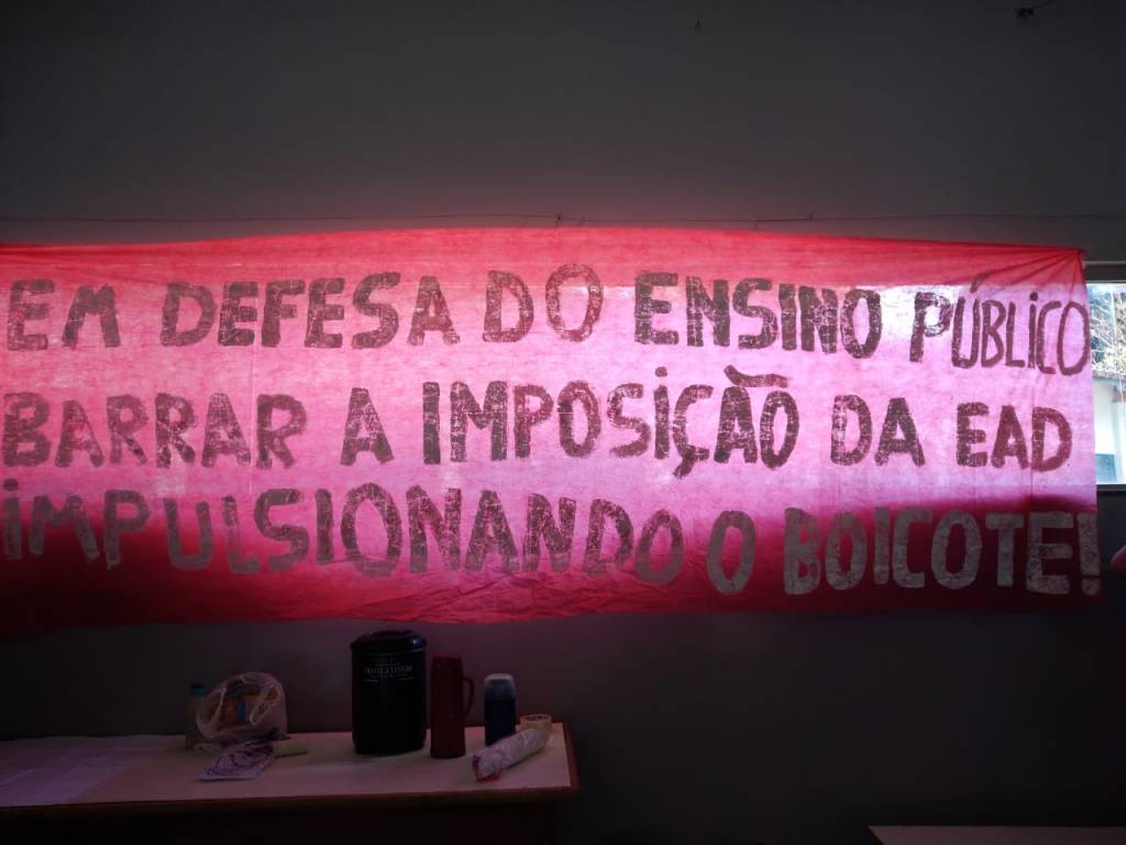Na mesa primeiramente palestrou um representante da executiva de pedagogia, explanando sobre a relação dos cortes com a situação política atual, servindo aos planos do governo de privatização e controle ideológico das universidades públicas. Nesse sentido, o governo lança mão da velha fórmula de sucatear para privatizar. Frente a essa situação, é cobrado aos estudantes e professores não cairem nas chantagens e propostas privatizantes do governo, mas responderem com luta combativa e presencial, ocupando a universidade para colocá-la a serviço do povo.