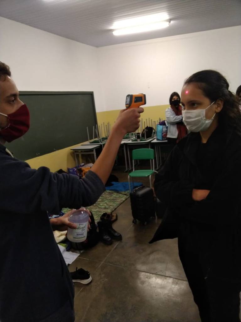 Aferição da temperatura dos participantesUso do álcool em gel.Limpeza da escolaLimpeza da escolaOrganização do espaçoCredenciamentoKit de CredenciamentoAlimentaçãoAlimentaçãoCine-debateCine-debateCine-debate