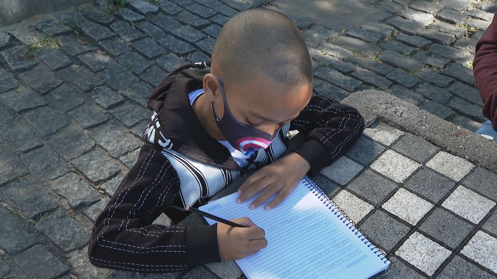 “Ele é muito interessado em aprender. Ele é perguntador demais. ‘Mãe, o que está escrito aqui?’, aí eu leio para ele”, disse Fabiane dos Santos Ferreira, mãe de Carlos Eduardo.