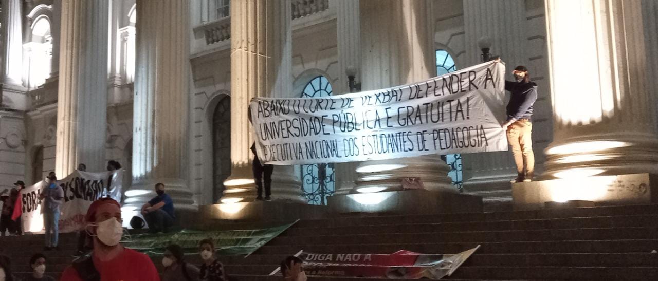 A Frente Estudantil contra a EaD participou do ato junto da Executiva Paranaense de Estudantes de Pedagogia, com a distribuição de 100 panfletos e com faixa denunciando o criminoso corte de verbas do governo federal na área da educação.