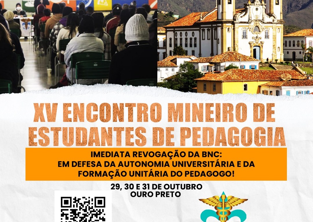 A Executiva Mineira dos Estudantes de Pedagogia (ExMEPe) convida alunos dos curso de Pedagogia e demais cursos de licenciatura, professores e toda a comunidade acadêmica a participar do EMEPe – XV Encontro Mineiro dos Estudantes de Pedagogia, com o tema “IMEDIATA REVOGAÇÃO DA BNC: EM DEFESA DA AUTONOMIA UNIVERSITÁRIA E DA FORMAÇÃO UNITÁRIA DO PEDAGOGO! ” , que acontecerá nos dias 29, 30 e 31 de outubro na cidade histórica de Ouro Preto – MG.