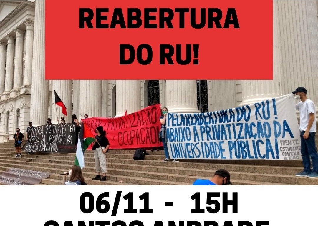 Nossa mobilização não pode parar! A Frente Estudantil convoca novo ato pela reabertura do RU para o sábado, dia 06, às 15h na praça Santos Andrade.