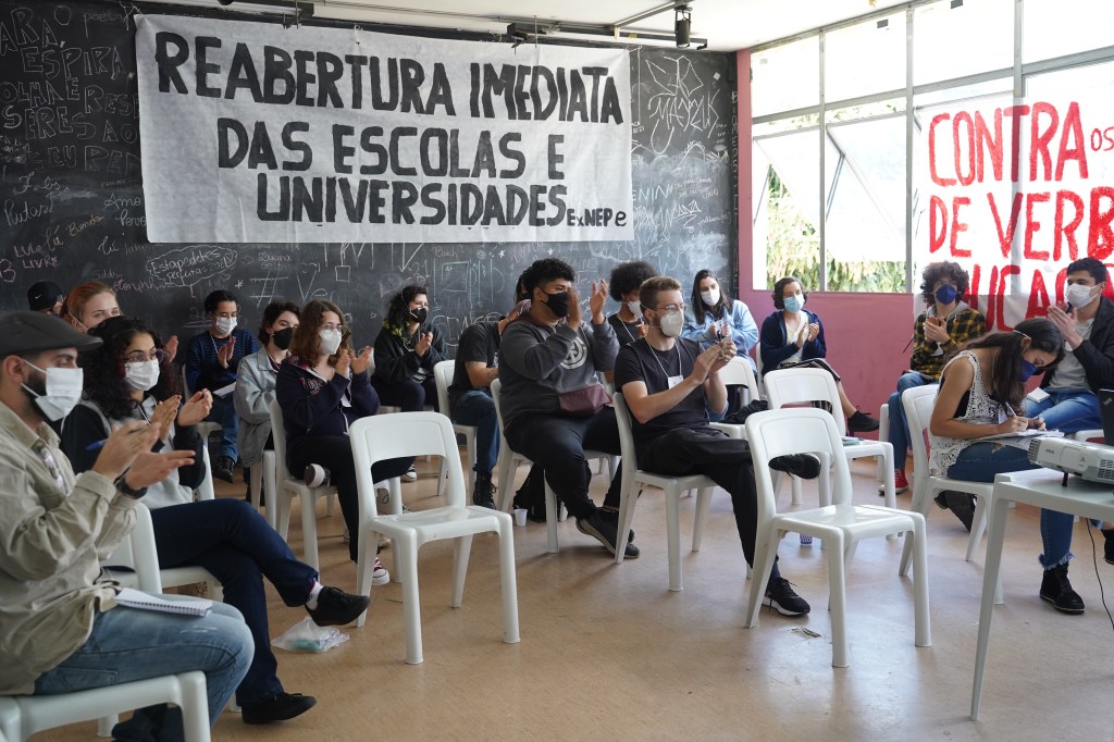 No domingo de manhã ocorreu o Encontro Nacional de Estudantes de Pedagogia Extraordinário, que reuniu concomitantemente estudantes de todo o país durante os Encontros Estaduais através de uma transmissão online. Tivemos a participação do prof. Dr. Marcos Calazans (UFOP) juntamente com o presidente e o Secretário Executivo da ExNEPe numa mesa especial para discutir a reabertura das escolas e universidades públicas. Foi enfatizado que não existe previsão de término da pandemia, o vírus continuará circulando por tempo indeterminado, porém há grandes avanços na ciência para prevenção do covid-19 e na imunização da população, inclusive de adolescentes, e, portanto, existem condições seguras para o retorno das atividades presenciais e, mais ainda, o retorno já é uma necessidade. Aos estudantes e professores fica a tarefa de adentrar as universidades, quebrar seus cadeados e ocupá-las e, dessa forma, defendê-las contra o perigo eminente de fechamento e privatização.