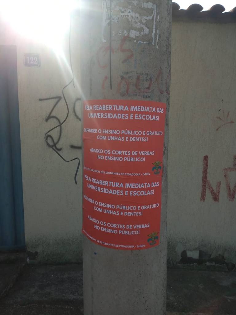 No dia 23 de novembro, Dia Nacional de Lutas da Pedagogia, neste ano em que se completam 10 anos da histórica greve de ocupação da UNIR, estudantes de pedagogia e licenciaturas de Minas Gerais realizaram uma vigorosa colagem de cartazes convocando a ocupação das escolas e universidades e contra os cortes de verbas na educação! Foram colados mais de 1000 cartazes em grandes corredores de BH, além de colagens em bairros como Morro Alto (Vespasiano) e Vila Bandeira Vermelha (Betim). Segue fotos da vitoriosa colagem!