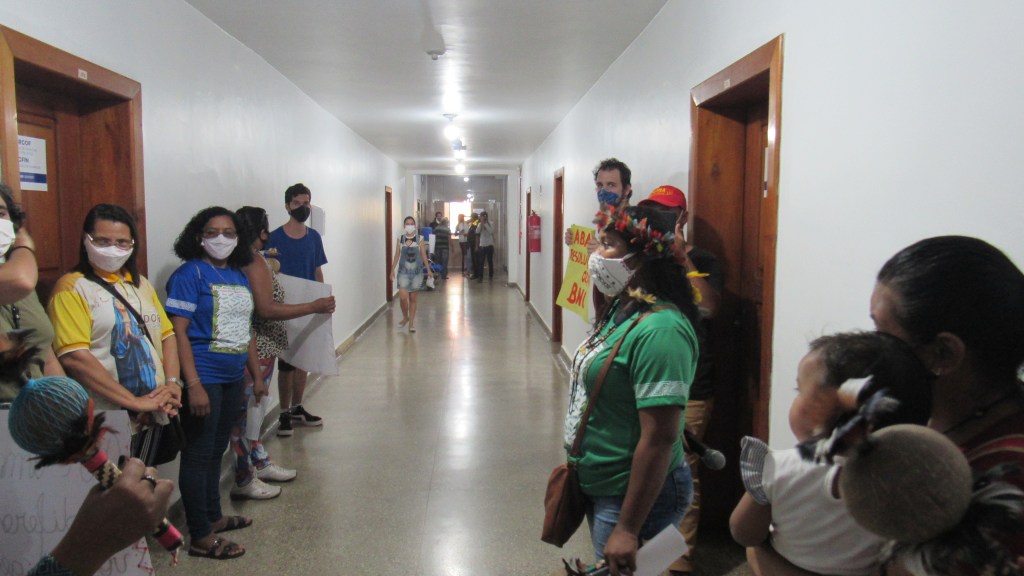 Considerando que as organizações indígenas já haviam enviado documento à reitoria e não obtiveram qualquer resposta, as organizações convocaram os participantes do ato, a adentrar o prédio da reitoria da UNIR e ocupar o gabinete da Reitora. A reitora, obrigada a receber os manifestantes que se dirigiram a seu gabinete passou a escutar as inúmeras denúncias de lideranças indígenas, negras e pessoas trans. Destacaram-se na denúncia as intervenções de estudantes e professores indígenas que denunciaram situações que caracterizavam discriminação existente na Universidade, da parte de professores e funcionários. Ainda sobre as exigências, a nota pública lida à reitora da Unir, Professora Marcele Pereira, trazia esta indignação: A Reitoria da UNIR atacou nossos Direitos e nossa dignidade ao publicar, na calada da noite, a PORTARIA Nº.632/2021/GR/UNIR, de 21 de outubro de 2021, não levando em consideração todo um histórico de luta por parte dos estudantes indígenas, professores, lideranças indígenas, movimento indígena, Associação das Mulheres Indígenas, DCE, pessoas trans, quilombolas, camponeses, que lutam para democratização das vagas nos cursos de graduação. As vagas devem ser preenchidas por quem de fato e de Direito tenham pertencimento aos grupos acima mencionados e não indivíduos que se apropriam de uma identidade somente para ocupar a vaga de um curso superior.