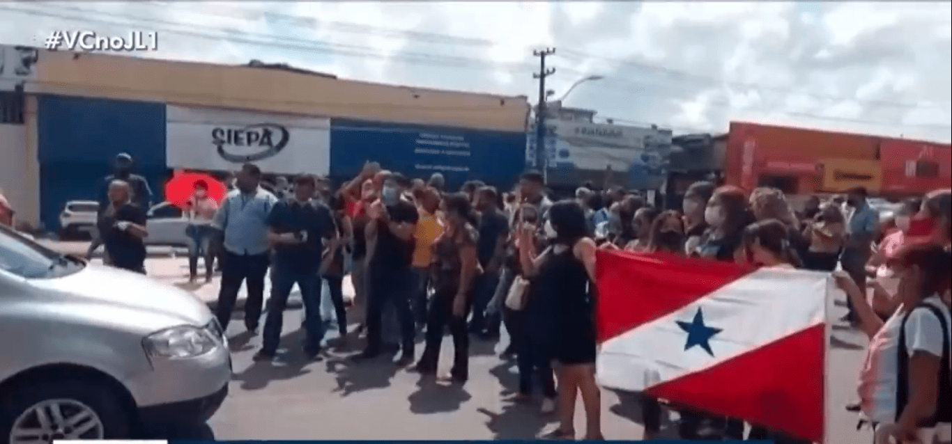 Nesta quinta-feira (9), centenas de trabalhadores da educação protestaram em frente à sede da Secretaria Estadual de Educação (Seduc), em Belém. O grupo chegou a bloquear a avenida Augusto Montenegro e parou o trânsito nos dois sentidos da via.