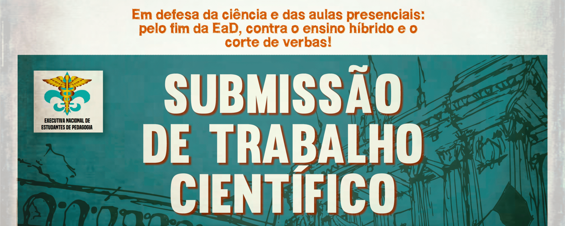 A COMISSÃO CIENTÍFICA, no uso de suas atribuições, através da Executiva Nacional de Estudantes de Pedagogia, faz saber que estão abertas, no período que corresponde entre as 00:00 horas do dia 09 de março até as 23:55 do dia 12 de abril de 2022 a submissão de trabalhos a serem apresentados no 41º Encontro Nacional de Estudantes de Pedagogia (ENEPe), que acontecerá entre os dias 20 a 24 de abril de 2022, na Faculdade de Educação da Universidade Federal Fluminense (UFF), Niterói (RJ).