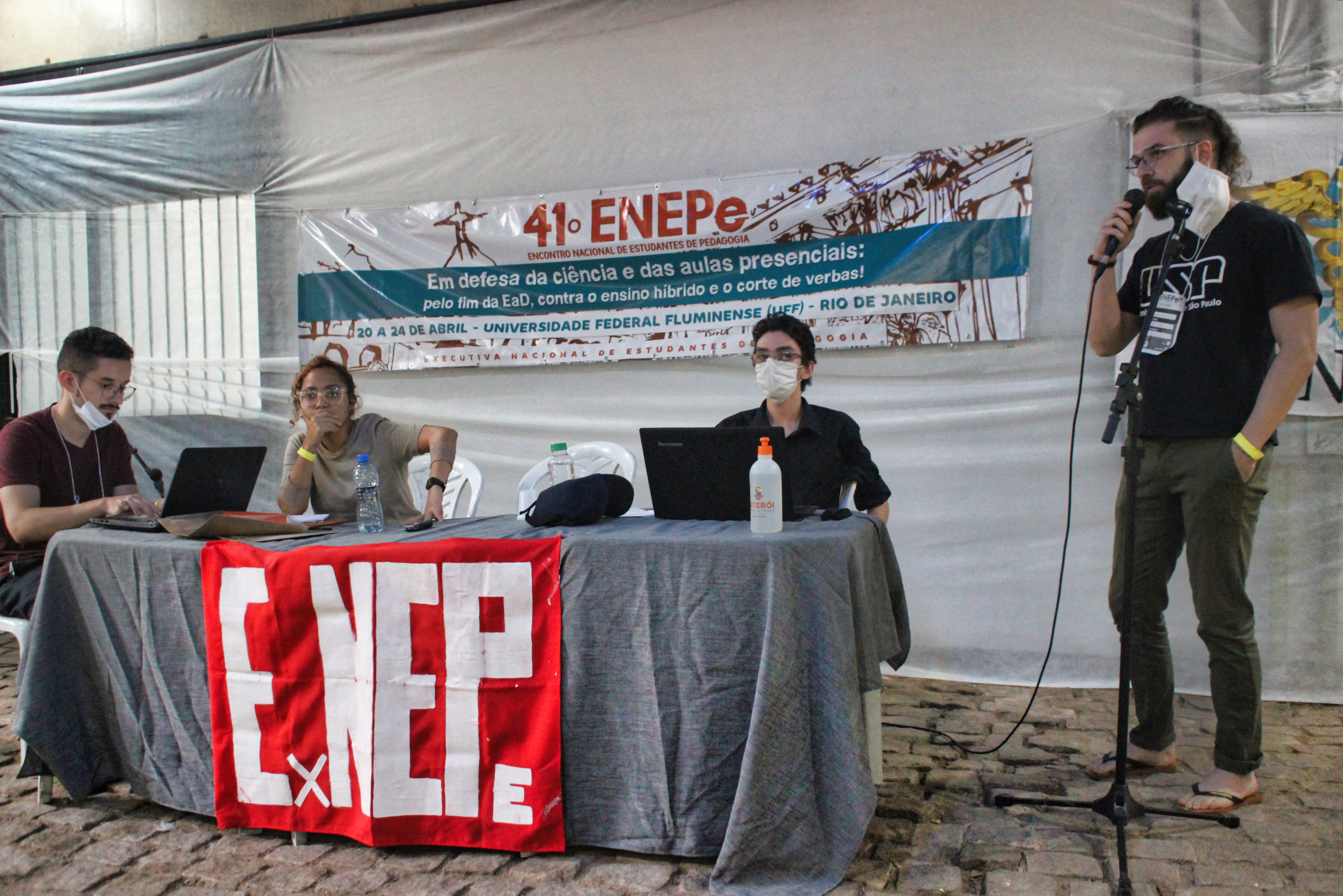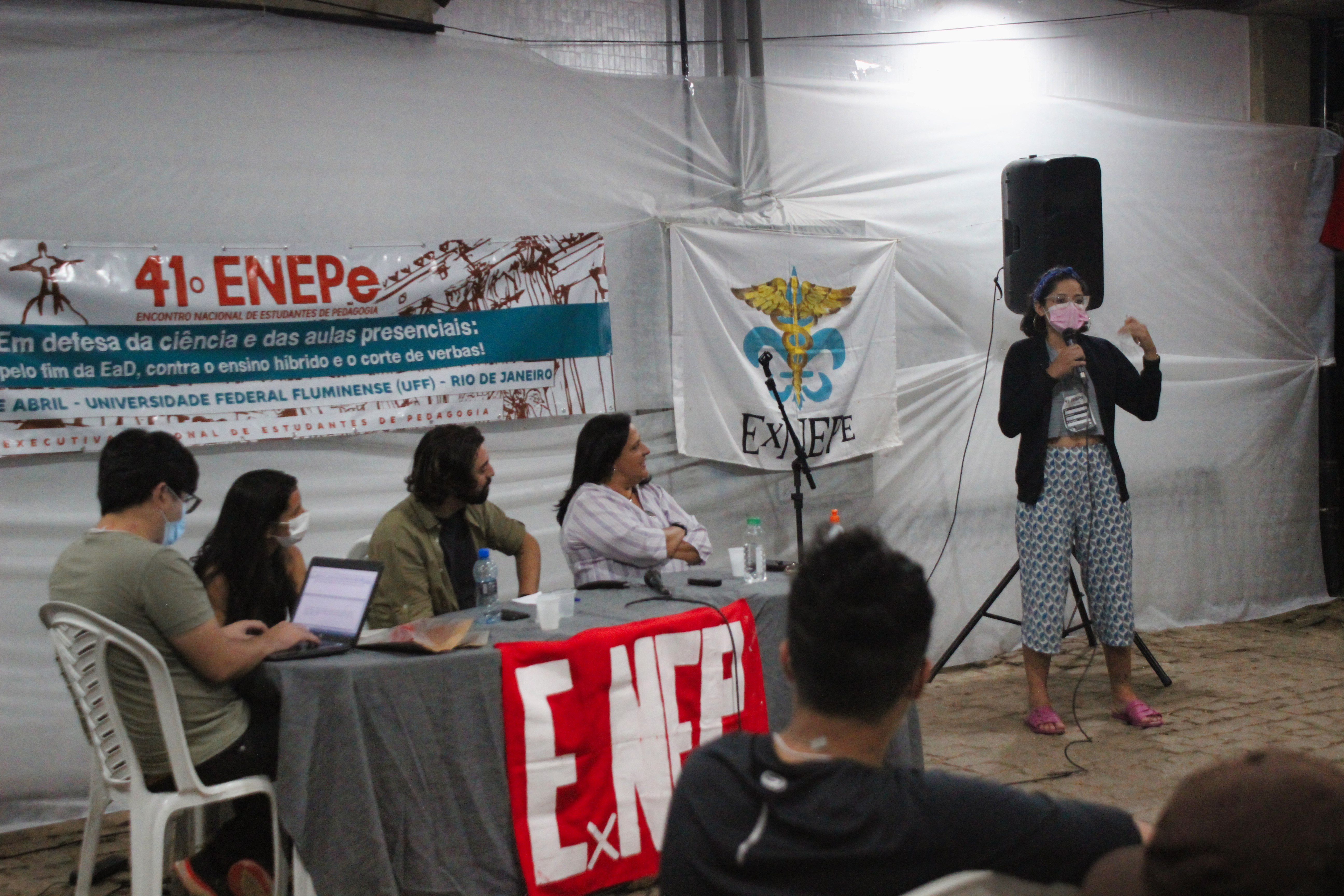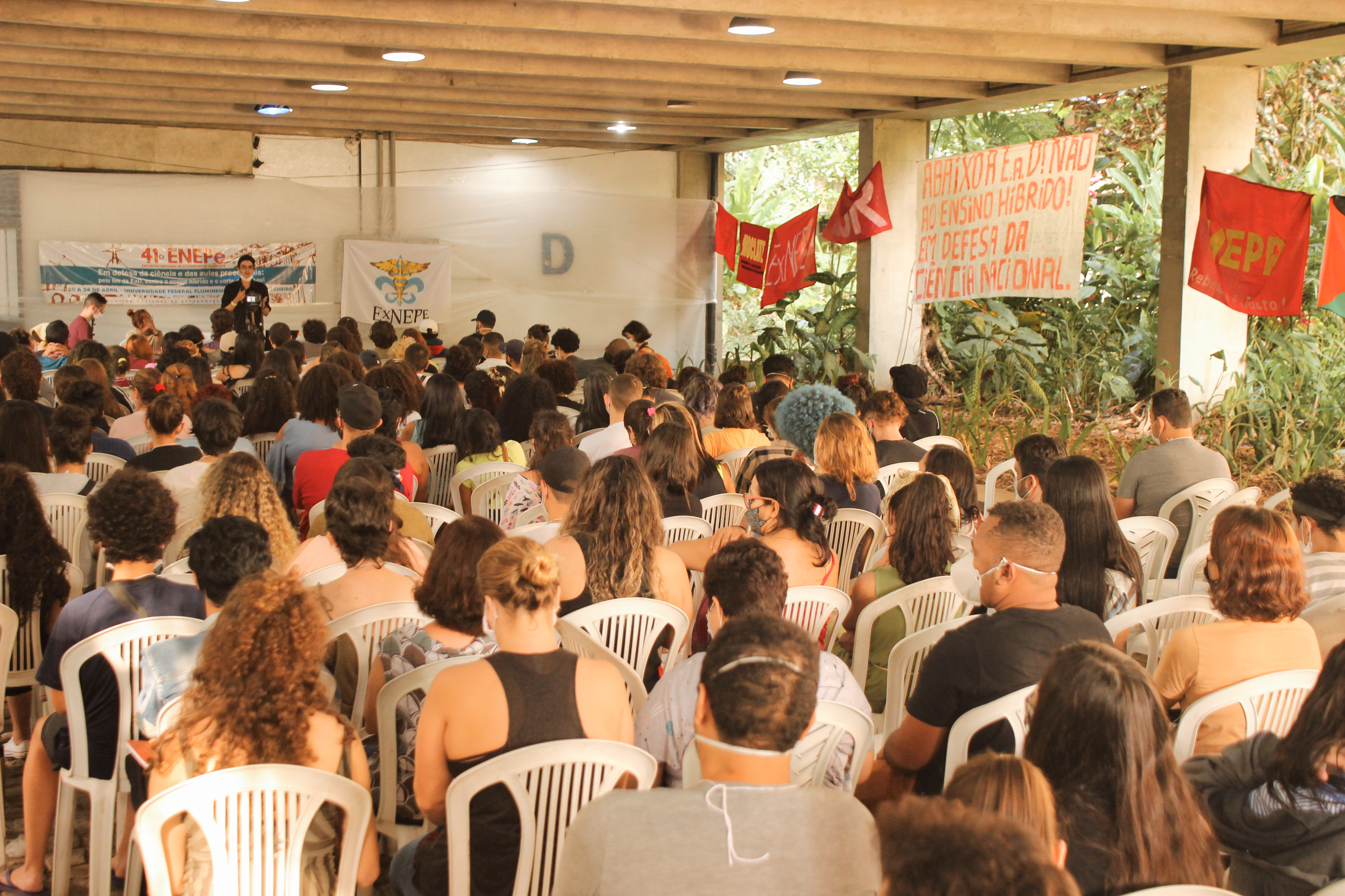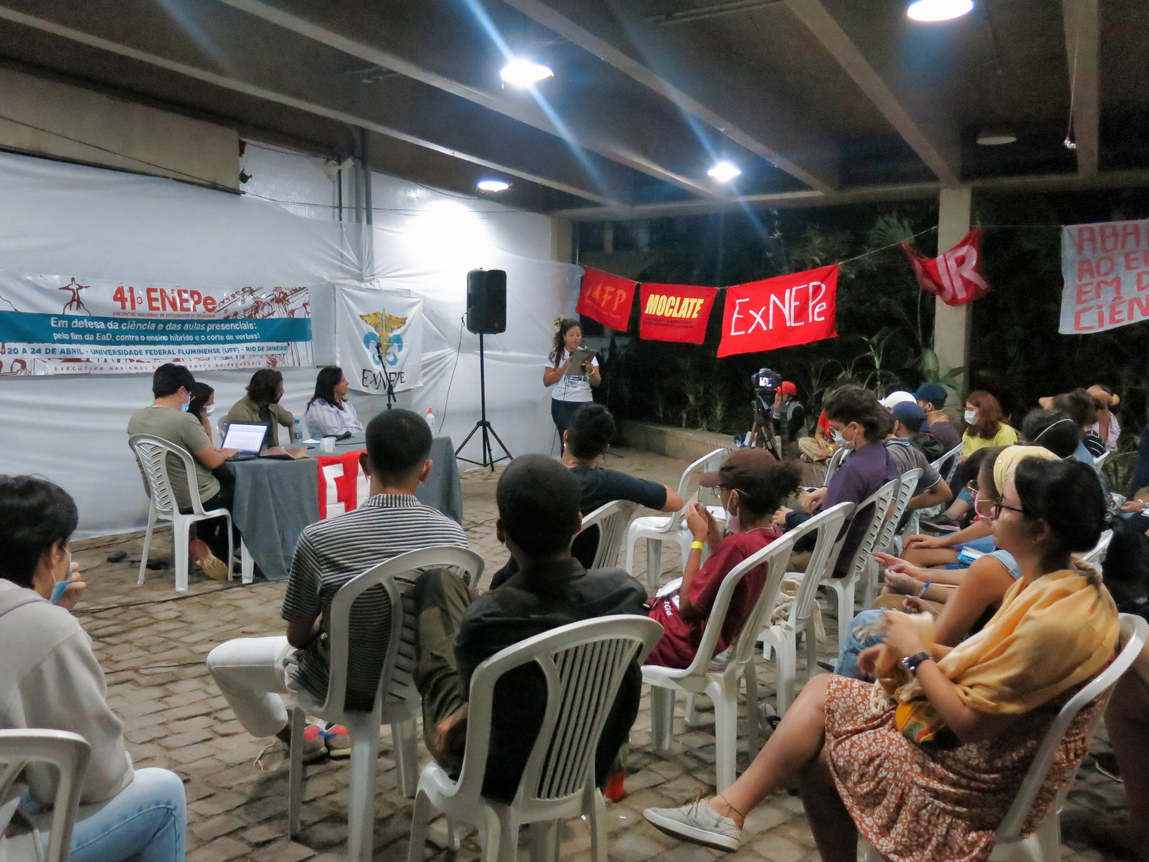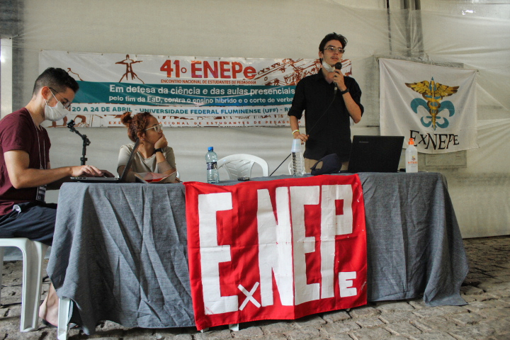 Abertura do 41º Encontro Nacional de Estudantes de Pedagogia contou com apresentação e fala da Secretaria Nacional da ExNEPe que enfatizou a importância da realização do Encontro presencial dentro de uma universidade pública, vitória conquistada com duras lutas empreendidas durante esses dois anos, na qual a ExNEPe pesistiu na luta presencial. Nesse momento também foram saudadas as diversas delegações de estados de norte a sul do Brasil, aprovação do regimento interno e formação das Comissões de Trabalho que atuaram na organização do evento em conjunto com a Comissão Organizadora.