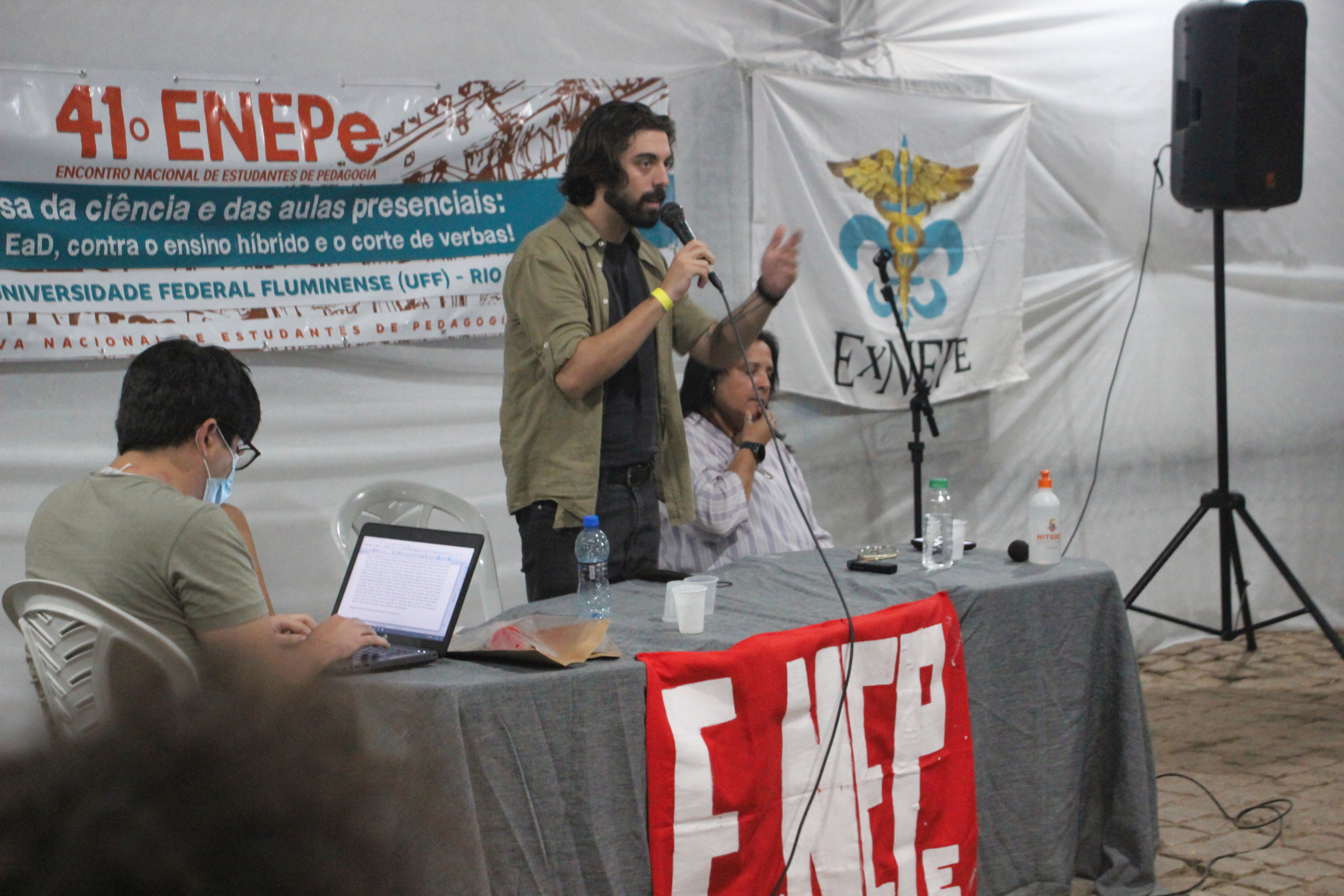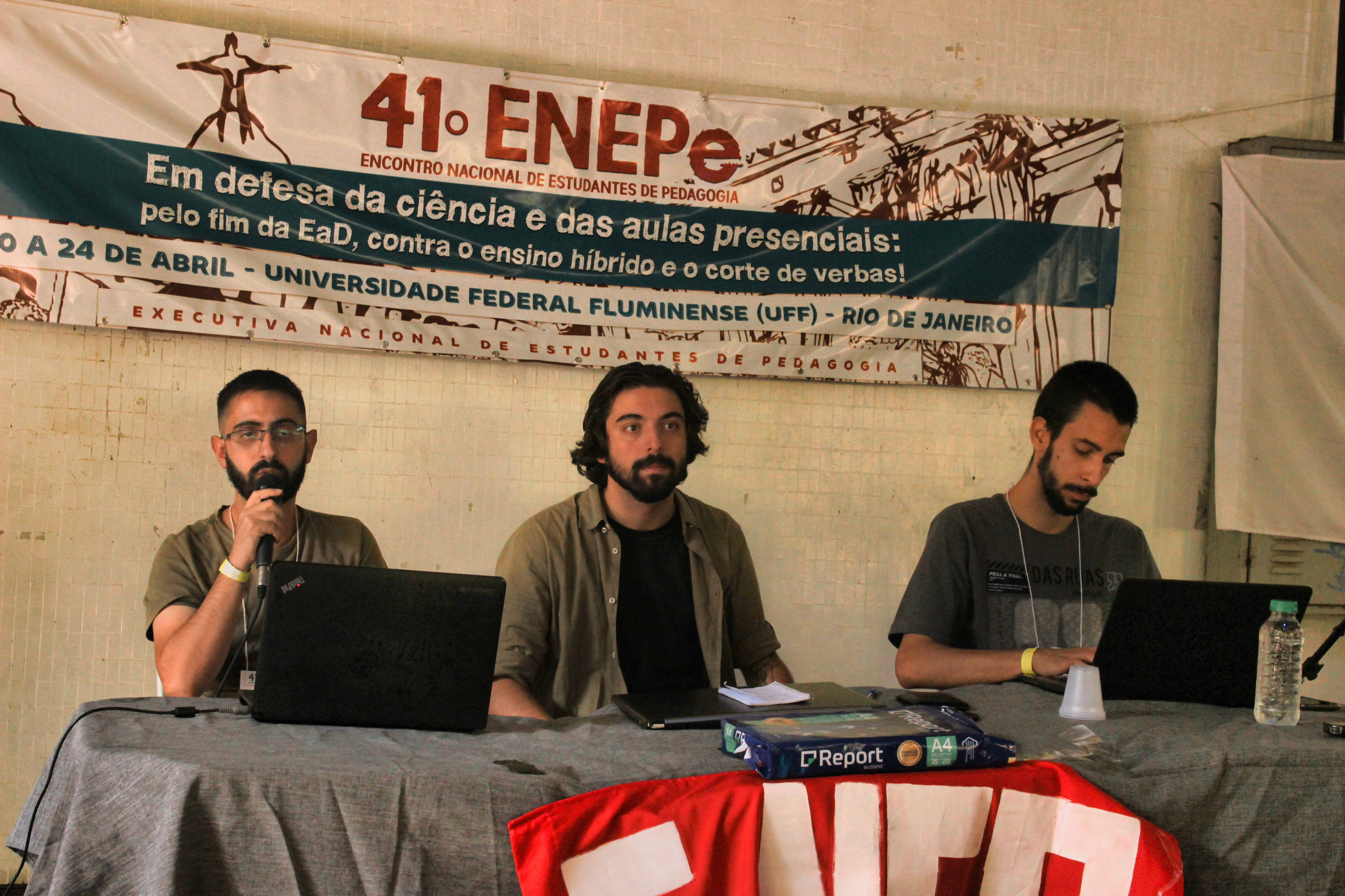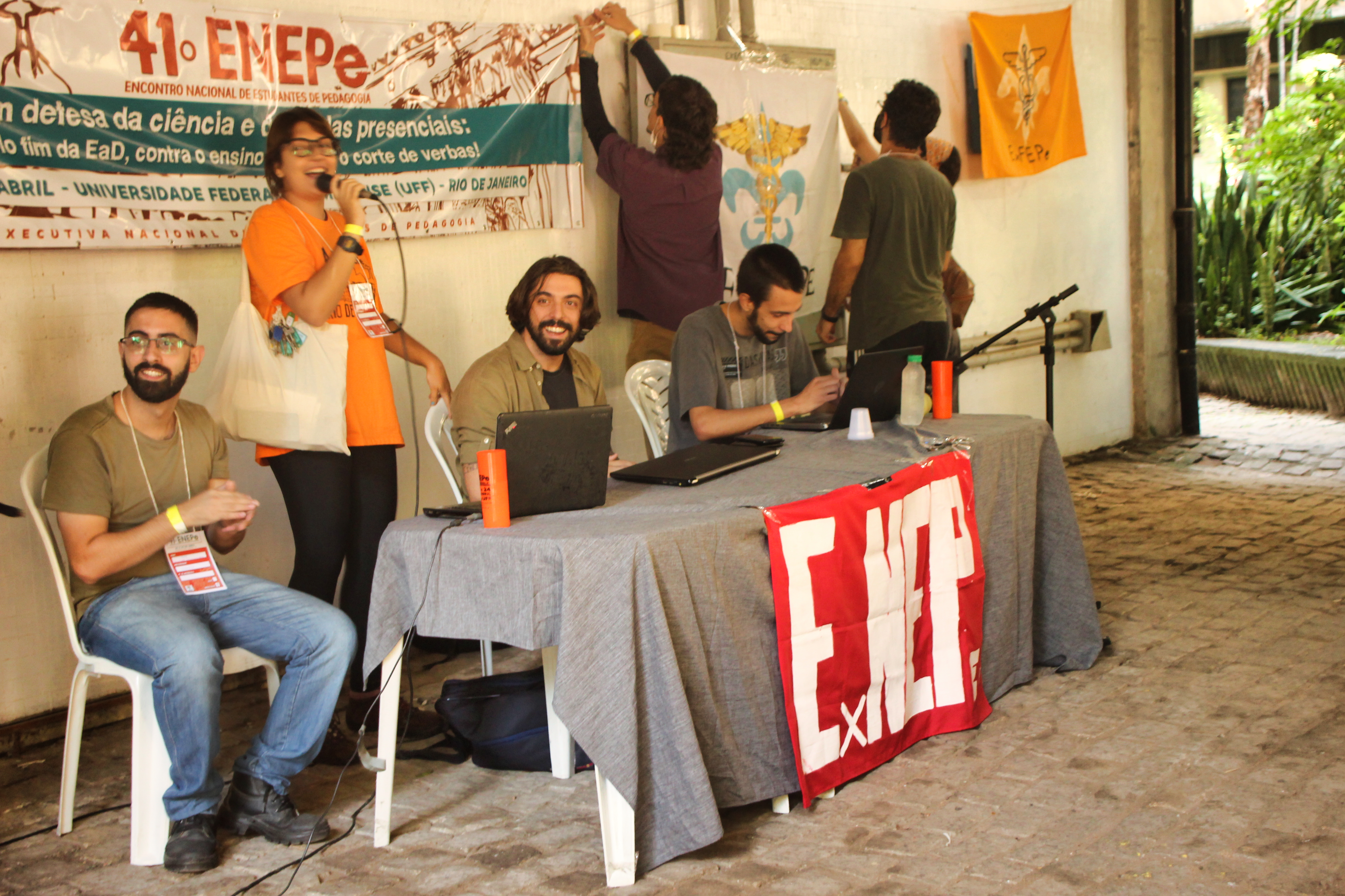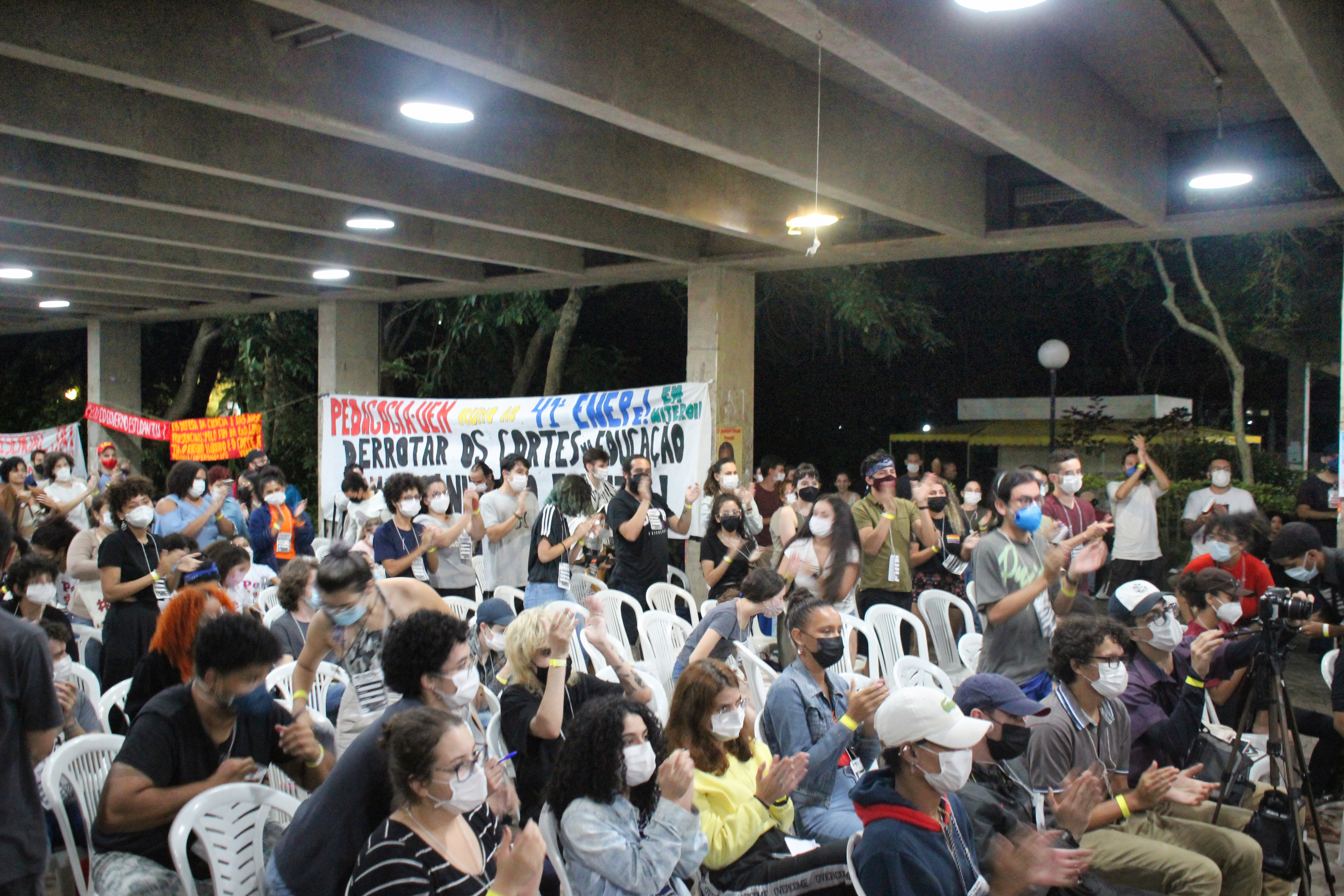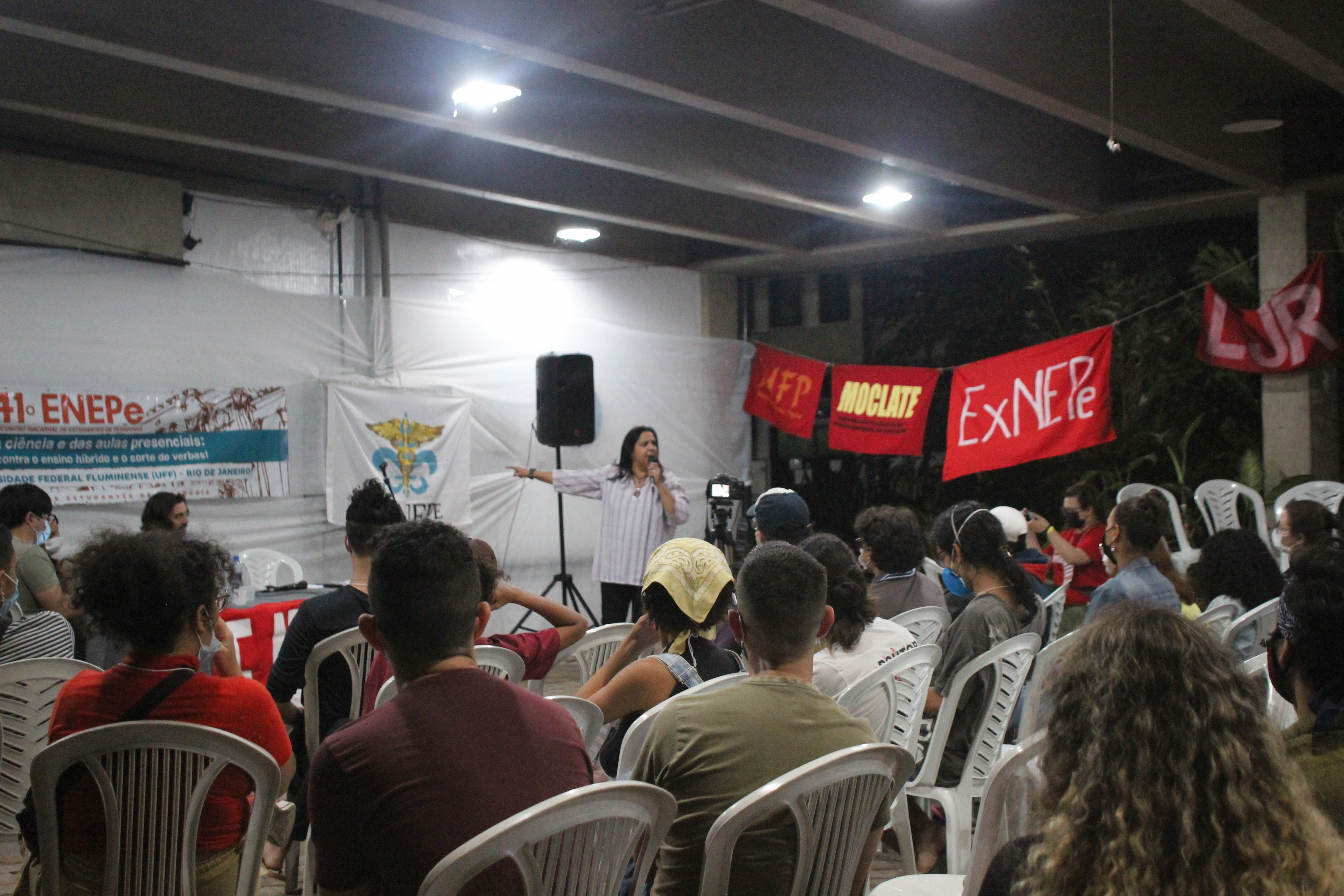 Abertura do 41º Encontro Nacional de Estudantes de Pedagogia contou com apresentação e fala da Secretaria Nacional da ExNEPe que enfatizou a importância da realização do Encontro presencial dentro de uma universidade pública, vitória conquistada com duras lutas empreendidas durante esses dois anos, na qual a ExNEPe pesistiu na luta presencial. Nesse momento também foram saudadas as diversas delegações de estados de norte a sul do Brasil, aprovação do regimento interno e formação das Comissões de Trabalho que atuaram na organização do evento em conjunto com a Comissão Organizadora.