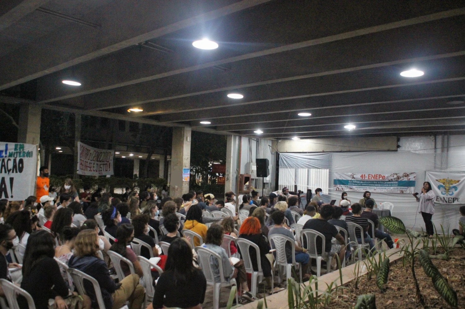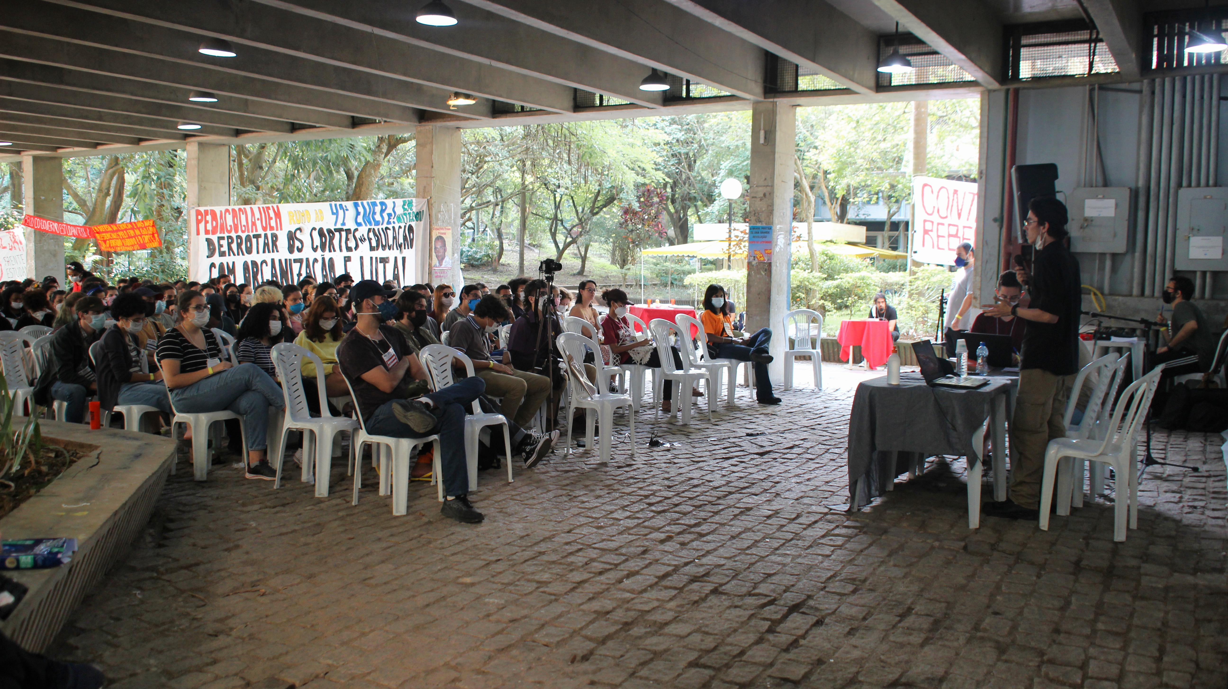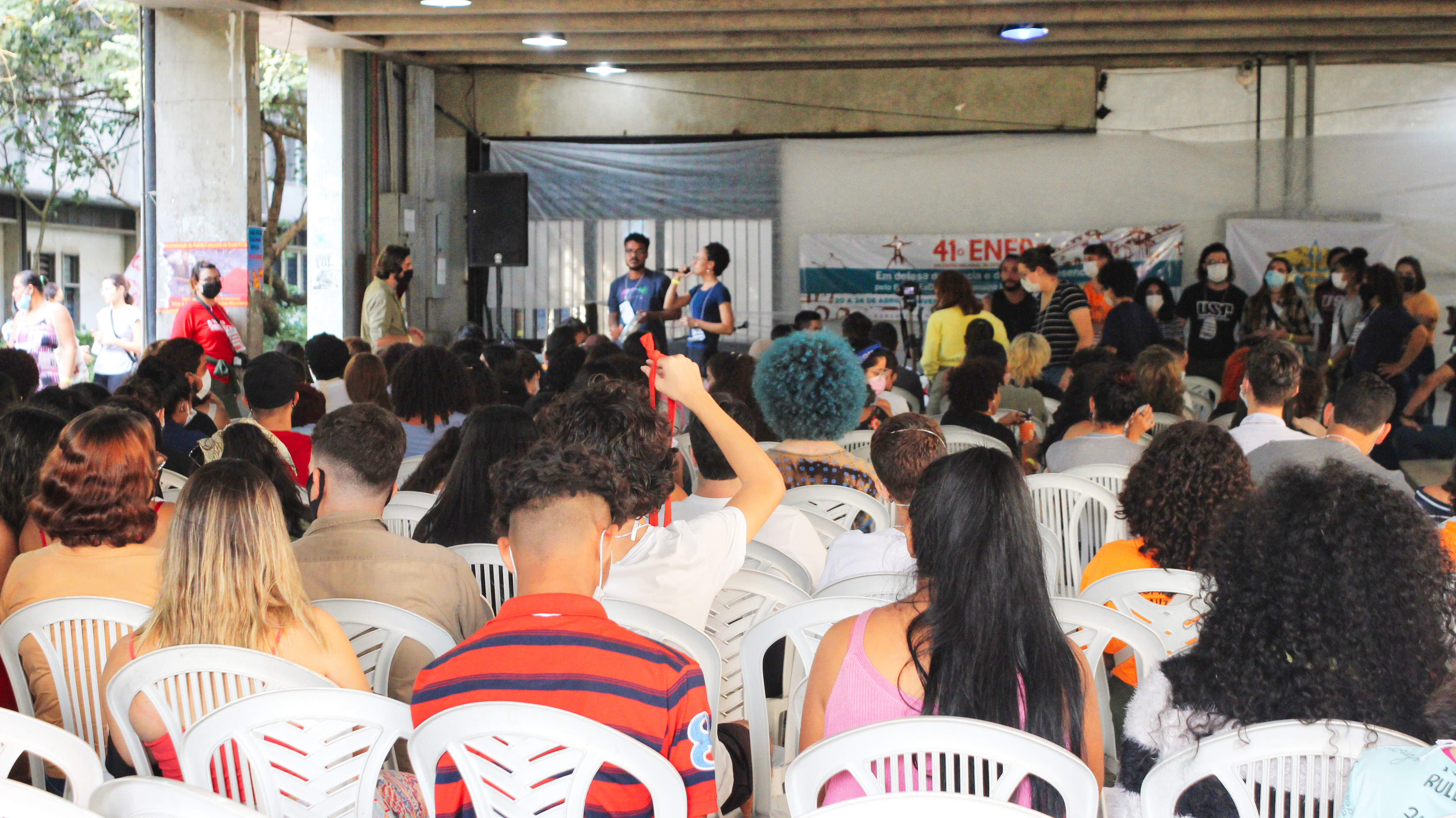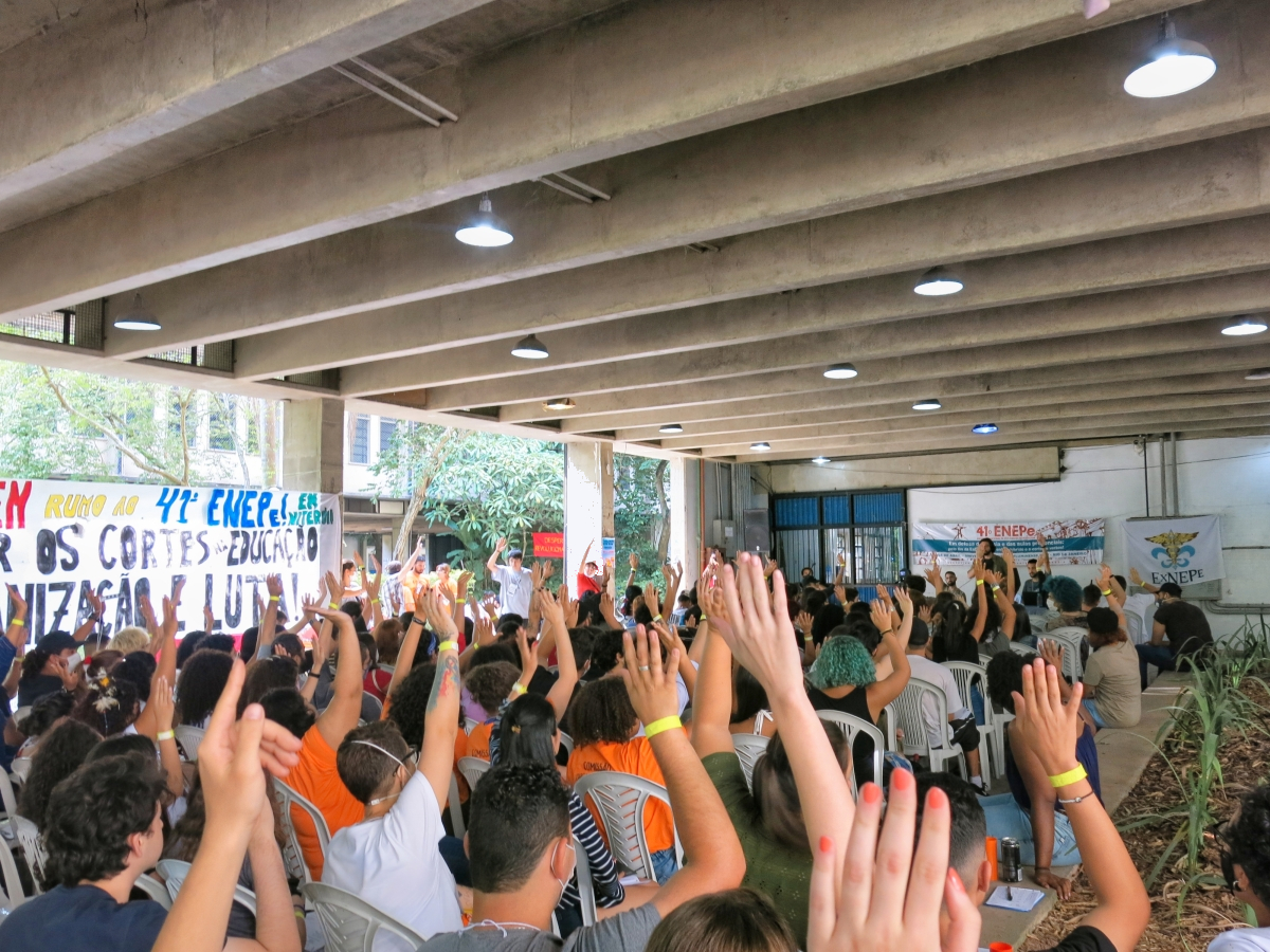 Abertura do 41º Encontro Nacional de Estudantes de Pedagogia contou com apresentação e fala da Secretaria Nacional da ExNEPe que enfatizou a importância da realização do Encontro presencial dentro de uma universidade pública, vitória conquistada com duras lutas empreendidas durante esses dois anos, na qual a ExNEPe pesistiu na luta presencial. Nesse momento também foram saudadas as diversas delegações de estados de norte a sul do Brasil, aprovação do regimento interno e formação das Comissões de Trabalho que atuaram na organização do evento em conjunto com a Comissão Organizadora.