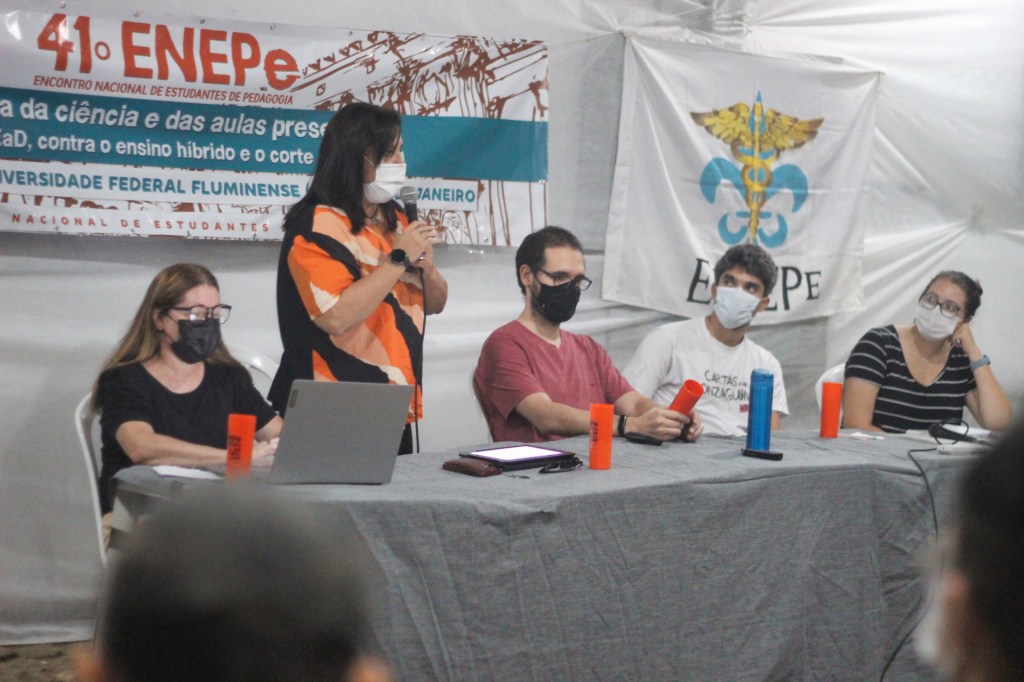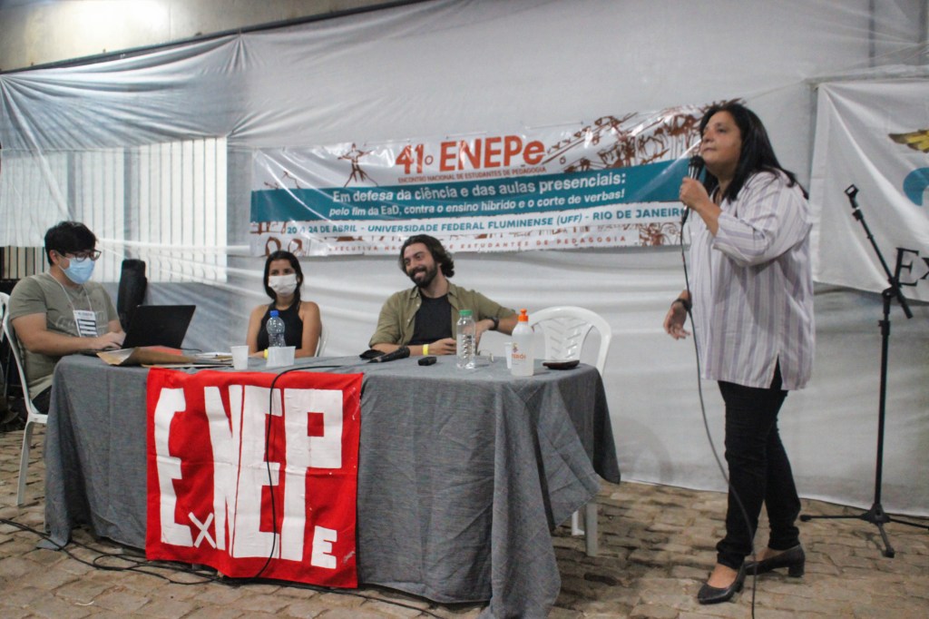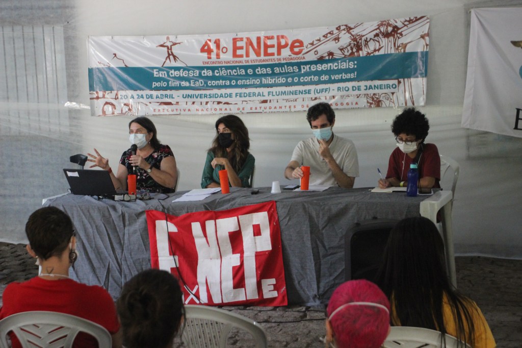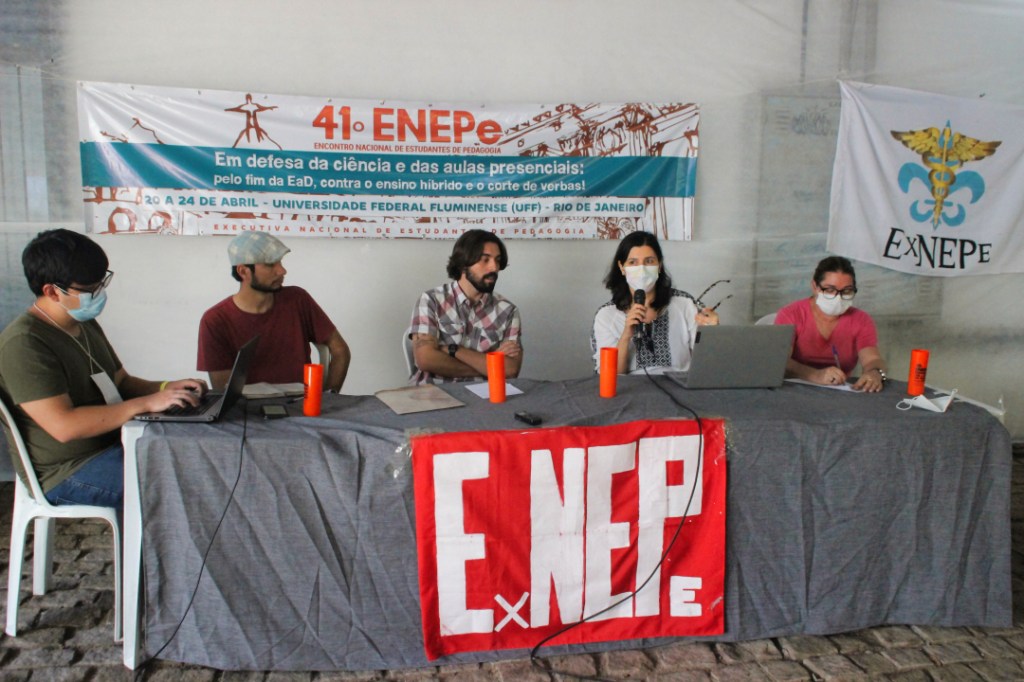 Abertura do 41º Encontro Nacional de Estudantes de Pedagogia contou com apresentação e fala da Secretaria Nacional da ExNEPe que enfatizou a importância da realização do Encontro presencial dentro de uma universidade pública, vitória conquistada com duras lutas empreendidas durante esses dois anos, em que a ExNEPe pesistiu na luta presencial. Nesse momento também foram saudadas as diversas delegações de estados de norte a sul do Brasil, aprovação do regimento interno e formação das Comissões de Trabalho que atuaram na organização do evento em conjunto com a Comissão Organizadora.