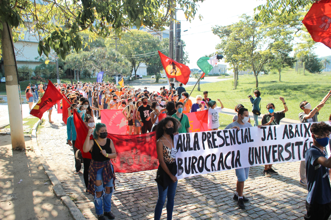 Como temos denunciado desde o início da pandemia, sendo inclusive a única entidade estudantil à nível nacional a manter erguidas as bandeiras de combate presencial, classista e a serviço do povo, mais além de seu objetivo econômico, a imposição da EaD tem por base cumprir com estes objetivos ideológicos e políticos que compõem a agenda da extrema-direita. Sendo chave neste processo a destruição cabal do Movimento Estudantil e de professores, históricos redutos de resistência popular. Fechadas as universidades e escolas, a organização do ME ficou extremamente debilitada. Como mobilizar, politizar e organizar estudantes sem que houvesse aulas, sem a convivência, troca de experiências e debates constantes? Uma vez mais, só aqueles de fato comprometidos com a defesa da educação mantiveram-se firmes, indo aos bairros para organizar os comitês sanitários de solidariedade popular, mantendo mobilizações, ainda que pequenas, nas escolas e universidades e denunciando a EaD como parte do processo de privatização do ensino público, porém ainda sofrendo com a perseguição do governo e do oportunismo.