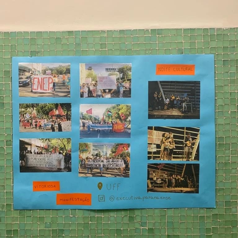 No dia 28 de maio, estudantes de pedagogia que participaram do 41° ENEPe que ocorreu em Niterói RJ confeccionaram um mural na UFPR com fotos dos principais momentos do encontro. O mural esta exposto no 7º andar do prédio do DPI.