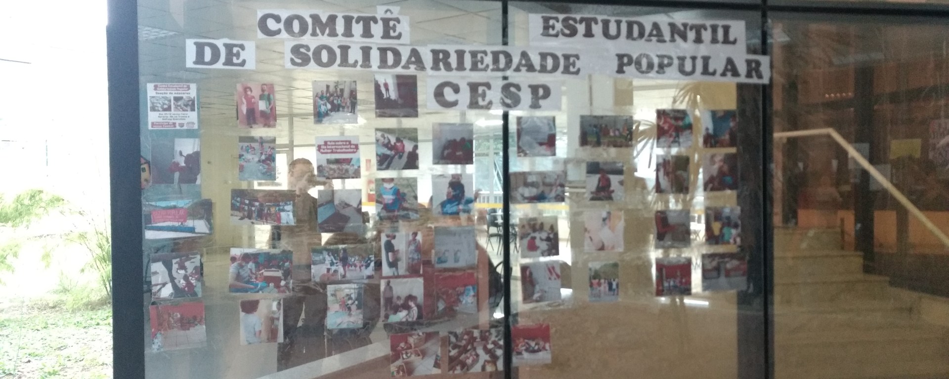 Estudantes da Unifesp e membros do CAPED Gestão E Vamos à Luta! confeccionaram um mural de fotos das atividades realizadas pelo Comitê Estudantil de Solidariedade Popular (CESP), do qual muito deles participam e que tem atuação num bairro popular em frente à universidade.