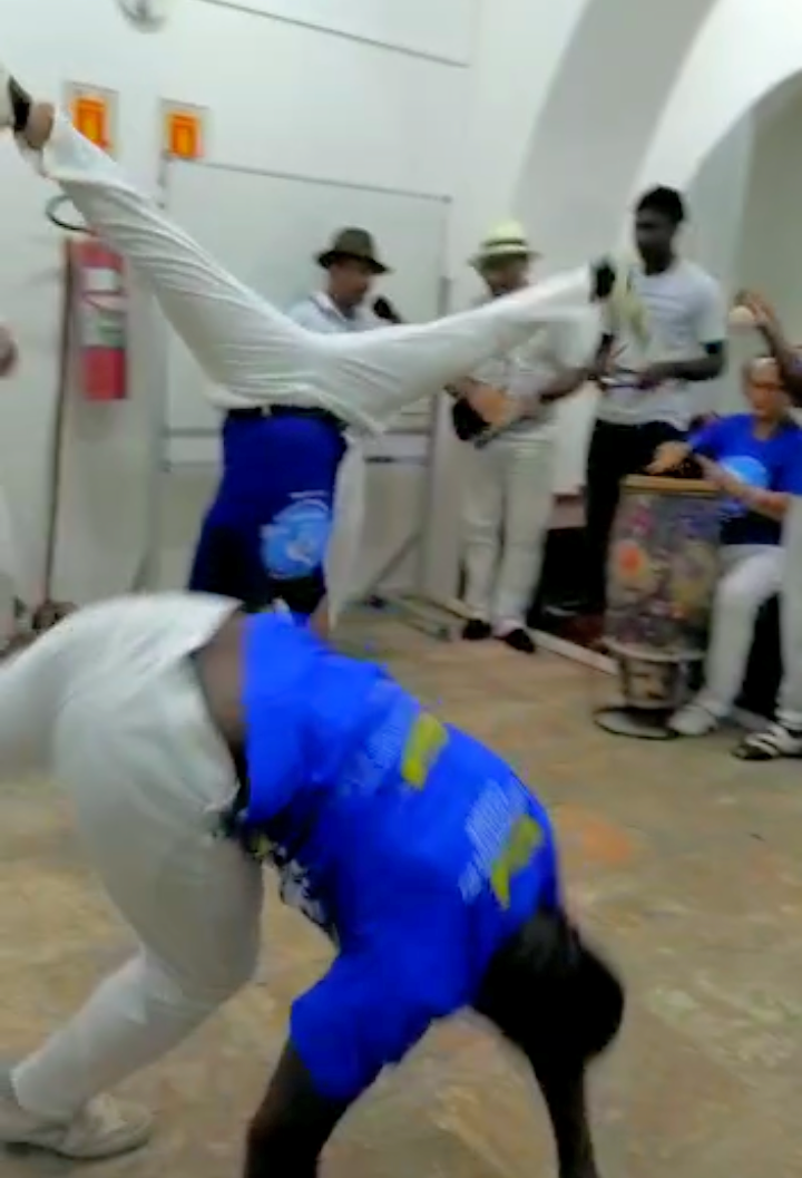 Durante a cultural, ao som dos berimbaus e tambores do grupo de capoeira, os estudantes puxaram a palavra de ordem: Resistir e lutar! Com a cultura popular! Palavra de ordem também entoada na apresentação do rapper Marco Gabriel.
