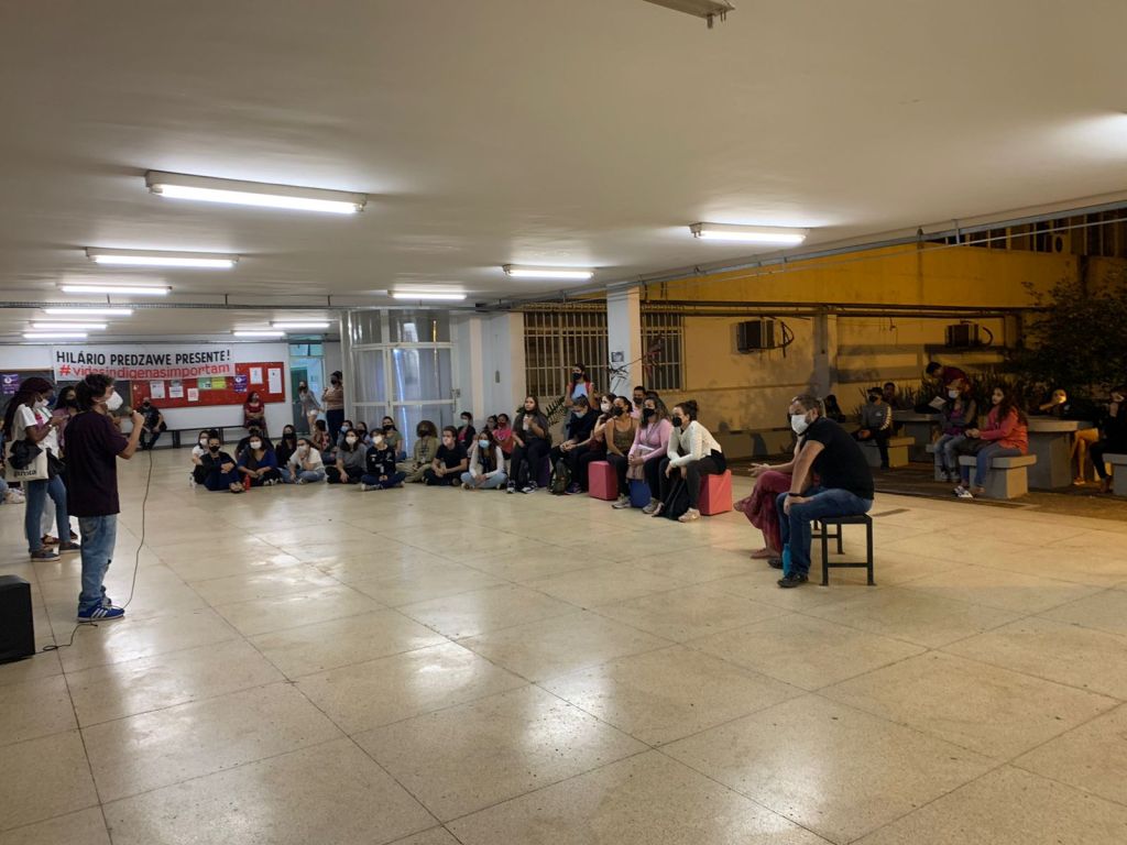 No noturno, as estudantes trouxeram para a luta a memória da professora Maria Emília de Castro Rodrigues e do estudante e colega Hilário Ab Reta Awe Predzawe, ambos vítimas do genocídio instaurado no desgoverno que assolou o país durante a crise sanitária. Foi reivindicado, e calorosamente aceito, que o CA deste curso seja refundado levando o nome do Hilário, para que ele se mantenha presente na luta com a mesma força que carregou em vida ao transformar as salas que entrava e todos que tocou com seu coração e força gigantes.
