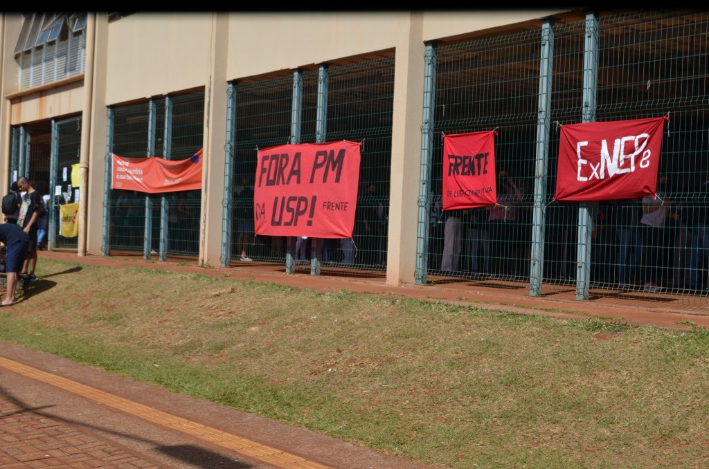 Na segunda-feira (30/05), estudantes combativos da USP mobilizaram atos pelo “Fora PM da USP!”, “Pelo pagamento atrasado dos auxílios!” e “Pela desterceirização dos restaurantes universitários!”. Os atos aconteceram na USP da Capital, no campus de Ribeirão Preto e no campus de Piracicaba (ESALQ).