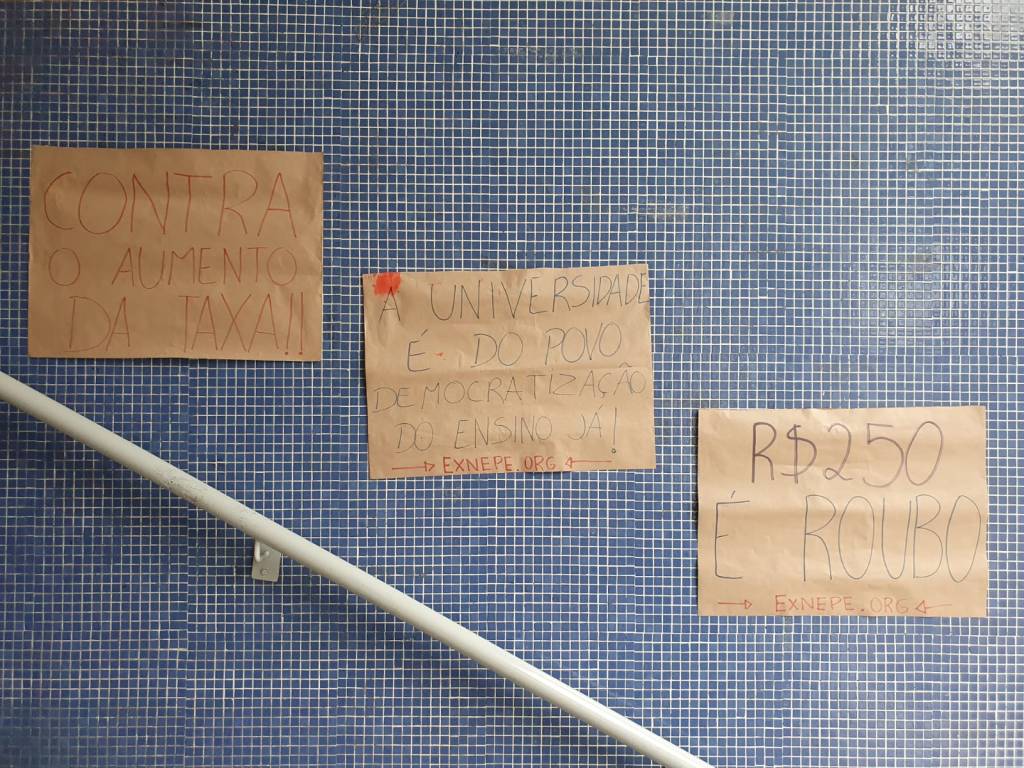 Após o debate, os participantes aproveitaram o momento do Pós-ENEPe para fazer uma manifestação em frente a reitoria denunciando a aprovação do aumento do preço do vestibular que foi feita na surdina. Antes custava R$155,00 e hoje passa a ser R$195,00 sendo que a proposta inicial era de R$250,00. Mais uma vez a burocracia universitária da UFPR mostrou sua verdadeira face aos filhos do povo, que são os cães fiéis do MEC e que vão gerir a crise imposta.