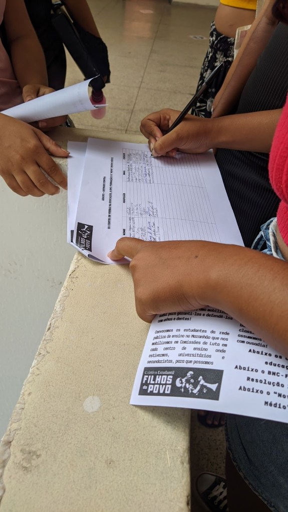 No Instituto Federal do Maranhão, campus centro histórico, o apoio dos secundaristas e professores para revogar a Resolução 2/2019 e barrar a BNC-FP foi considerável, demonstrando-se pelas centenas de assinaturas feitas nas passadas de sala em sala.