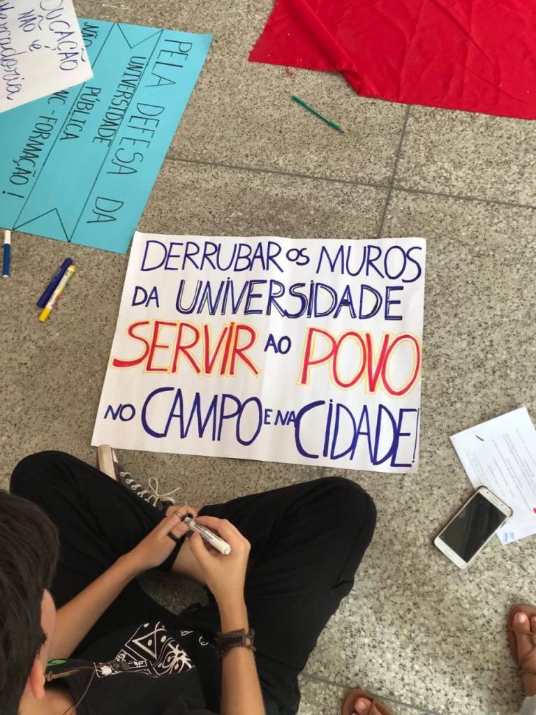 Por fim, houve um último ato onde os estudantes se direcionaram para a frente do prédio e alçaram as faixas e todos os cartazes produzidos puxando assim vigorosas palavras de ordem como “É greve é greve de ocupação Nem sucateamento nem privatização!”