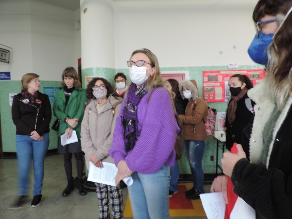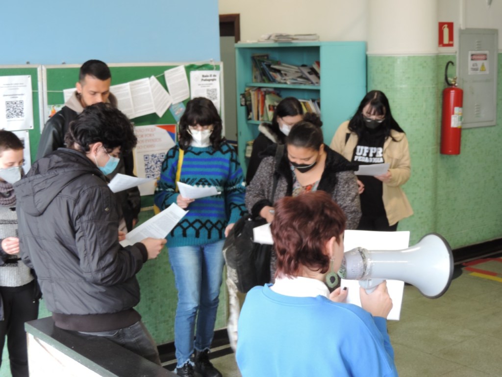 O grupo de manifestantes leu o texto de convocação do dia 15 postado pela ExNEPe, e logo após, alguns estudantes fizeram combativas intervenções, denunciando o caráter antipovo, anti democrático e privatista da BNC-FP. Duas professoras da pedagogia, da área de políticas educacionais e organização do trabalho pedagógico compareceram e prestaram seu apoio. Demarcaram a necessidade de unir professores e alunos nessa luta e de que não podemos esperar que as eleições revoguem a resolução 02/2019.