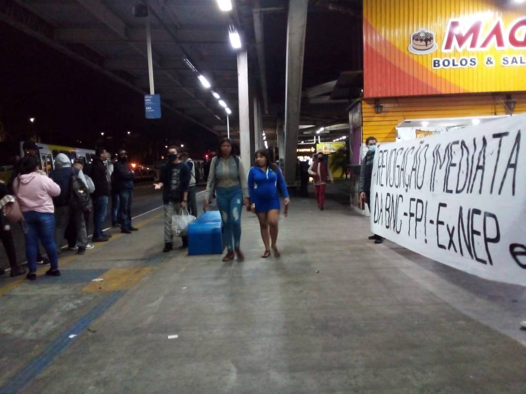 Após a propagação na UNIFESP, os estudantes voltaram-se para o terminal de ônibus do bairro dos Pimentas, próximo da universidade. Lá, foram entoadas as palavras de ordem “Pedagogia é profissão, não deixa o MEC acabar com a Educação!”, “Abaixo, abaixo, abaixo a BNC! Pelo direito de ensinar e aprender!”. A agitação ocorreu em meio aos trabalhadores, onde foi tratado de vincular os ataques à educação como parte dos demais ataques antipovo do governo militar de Bolsonaro, além de apontar que o caminho é a organização popular para gerar mudanças, sem ilusões com as eleições.