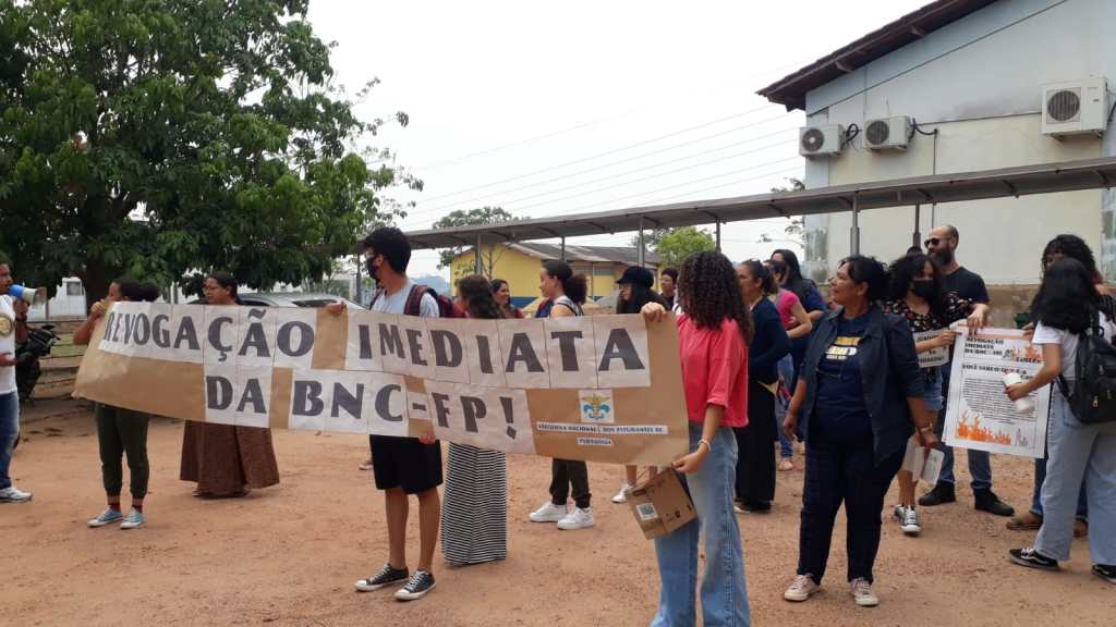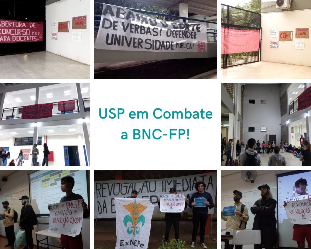 Desde a publicação da Nota Técnica do CNE de junho de 2022, a ExNEPe convocou todos os estudantes e professores a lutar com unhas e dentes pela imediata revogação da Resolução 02/2019! Nos meses que se seguiram foram realizados pós-ENEPe em inúmeras universidades, todos com o tema da revogação da BNC. Muitas mobilizações, espaços de discussão, produção de faixas, colagens de cartazes, reuniões com estudantes e professores trataram de dar corpo à luta nos meses de junho à setembro de 2022, conquistando o adiamento do prazo para a adequação à Resolução 02/2019 para 2023. No dia 15 de setembro, Dia Nacional de Combate à BNC – Formação, dezenas de universidades mobilizaram-se, atendendo ao chamado da Executiva.